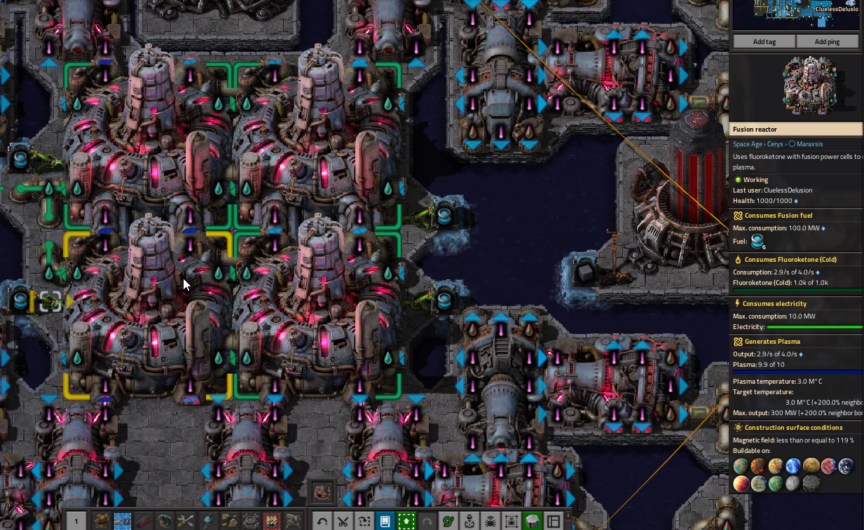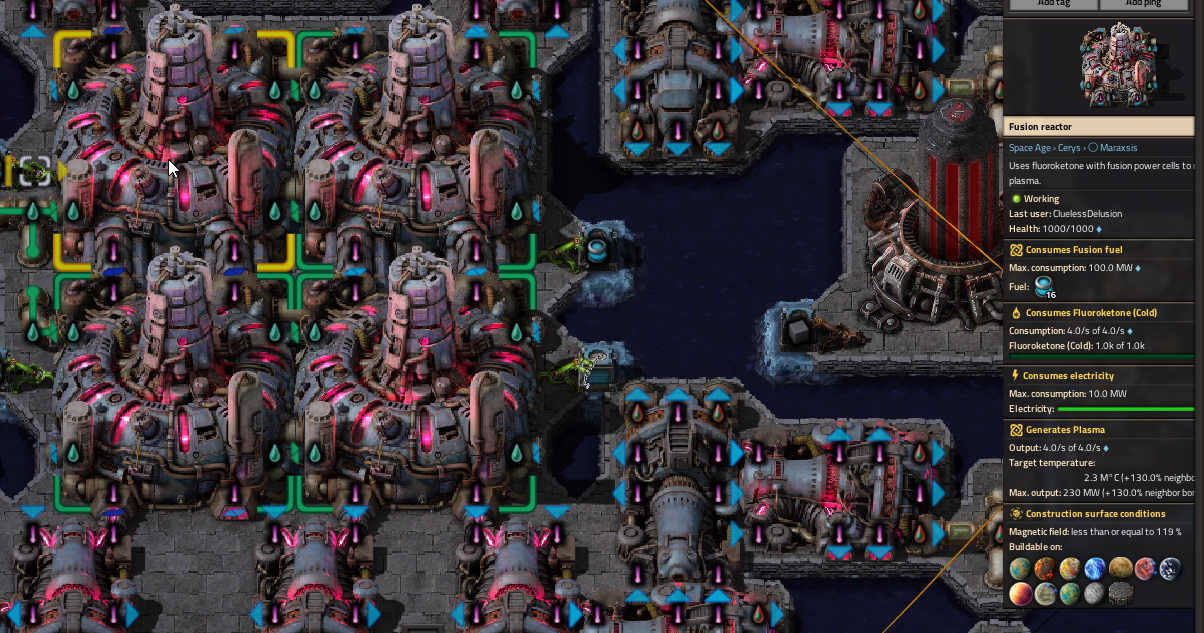 У меня щас трабла не с скоростью, а с ебаным энергоснабжением. Поставил 3 фузион реактора и не могу блять понять почему оно все работает через жопу. Средний реактор пишет что "выход заполнен". Че это нахуй означает, что выход плазмы не работает или выход фторкетона? Я правильно вообще число генераторов с учетом бонуса "соседства" просчитал? На 3 реактора нужно 16 генераторов или сколько? Для бонуса "соседства" реакторы нужно соединять друг с другом выходами плазмы или фторкетона? Или похуй ? В полёте под нагрузкой у меня почему-то начали отваливаться генераторы, т.е. они останавливались и общая генерация корабля падала. Это че за рофел, с какого перепугу ваще ? Просто половина генераторов колом встает какого-то хуя и генерация с 800МВт падает до 400МВт. Ебаный рот этого термояда.