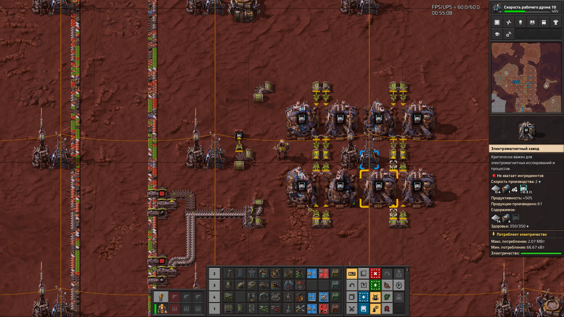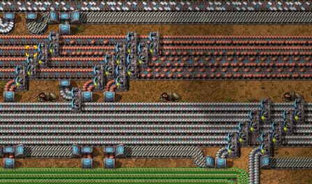готовлюсб морально к красным схемам. изучил стакинг белтов. пьянь тут разошлась 1. инсертеры 2х1 и жрут 1.5мв каждый 2. все домики что выгружают непосредственно на белт (майнеры в первую очередь, плавильни, и куча всего другого) получают этот бонус автоматом из минусов - чистка белтов дронами занимает гораздо больше времени