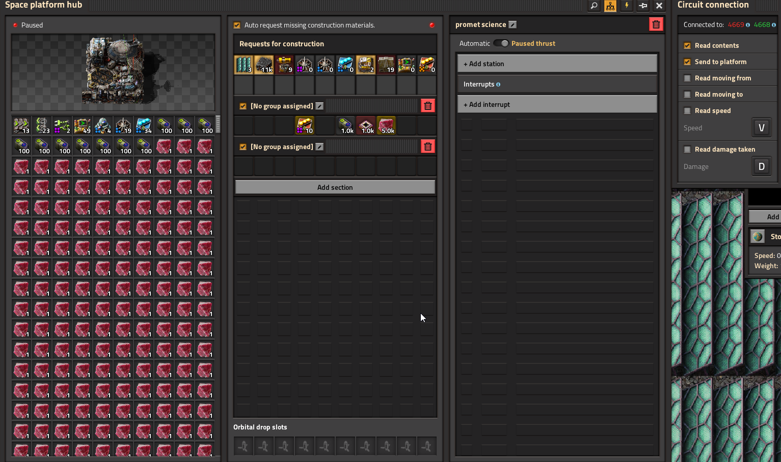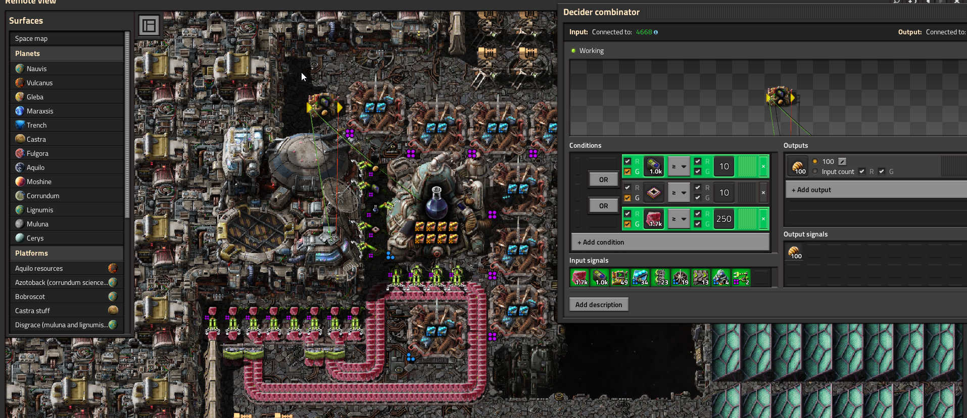 >>49921122 Добавлю к этому, запрос на наувисе лучше не вбивать в лендинг паду, а читать с робопорта содержимое сети и комбинатором передавать запрос на паду, когда чего-то стало мало, иначе так и будет сыпать говняк килотоннами.