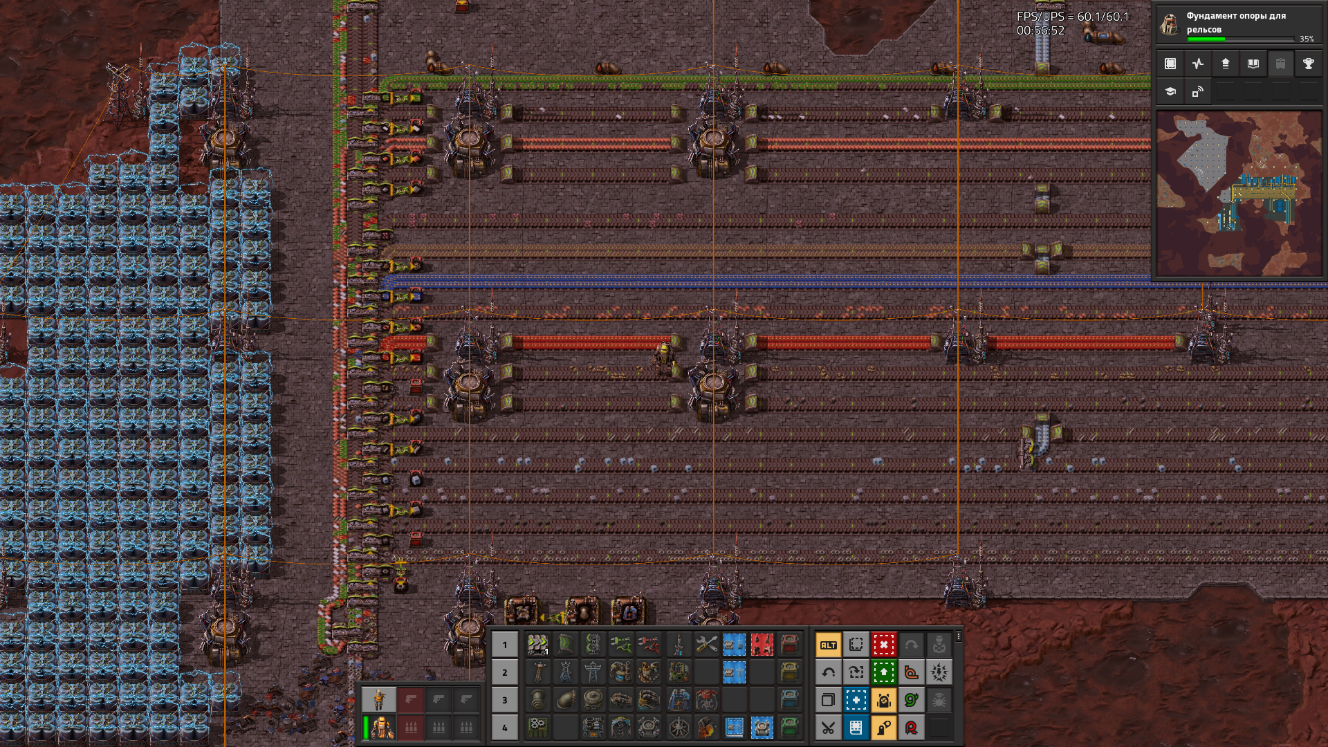 300+ часов в пьяне. заметил что поставил лапку, которая забирает сажу из поездов не той стороной в шаблоне заправки. бегаю чищу поезда от сажи вручную.