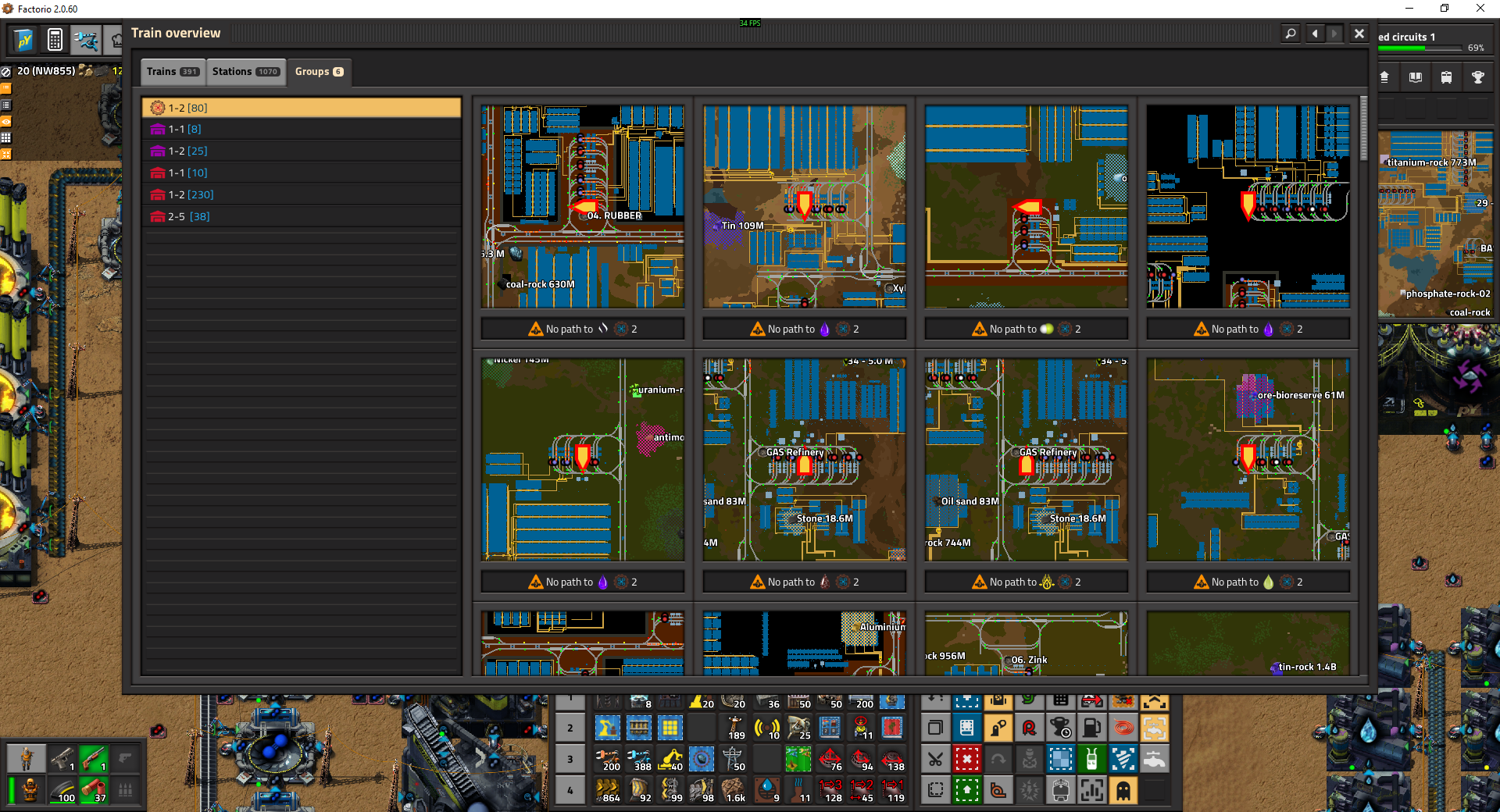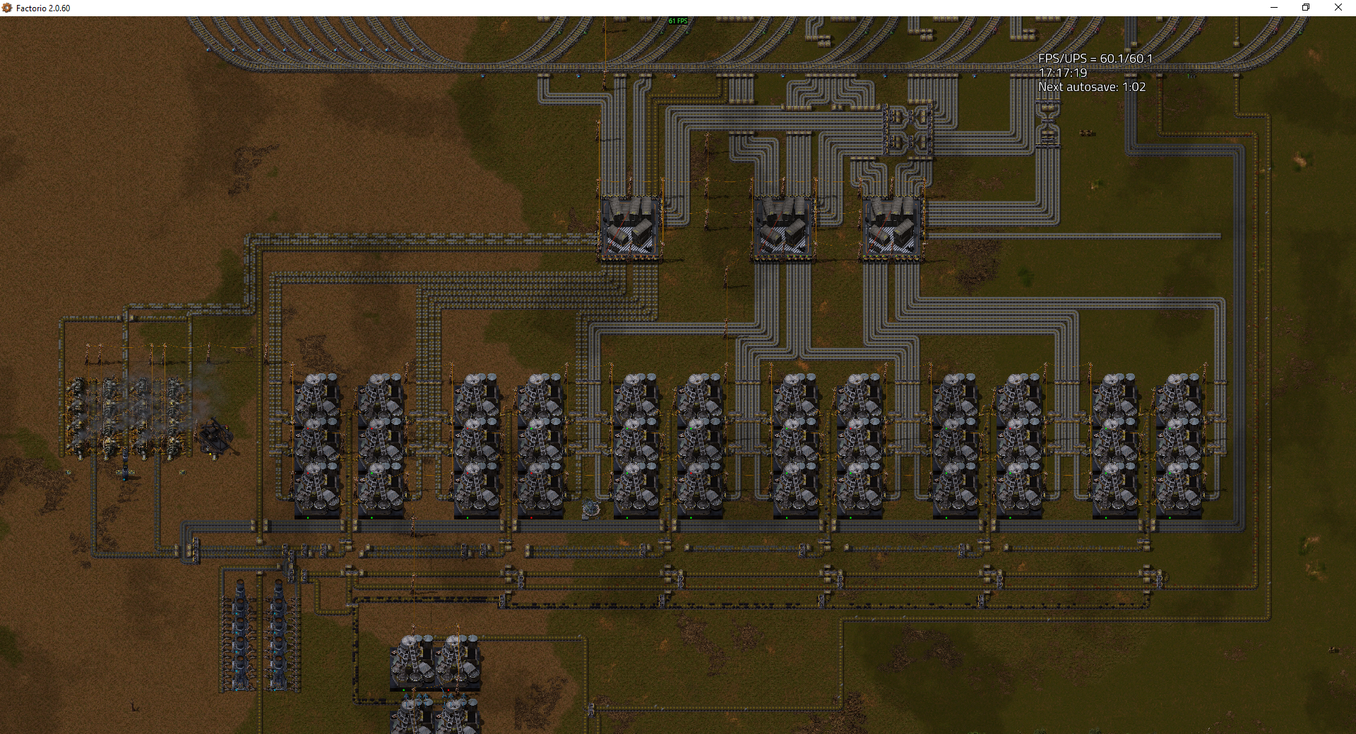 >>50067888 Красиво, только я не понимаю как тебе удается равномерно загружать три компонента для рокет в один вагон, на картинке там нету никакой логики вокруг загрузки.