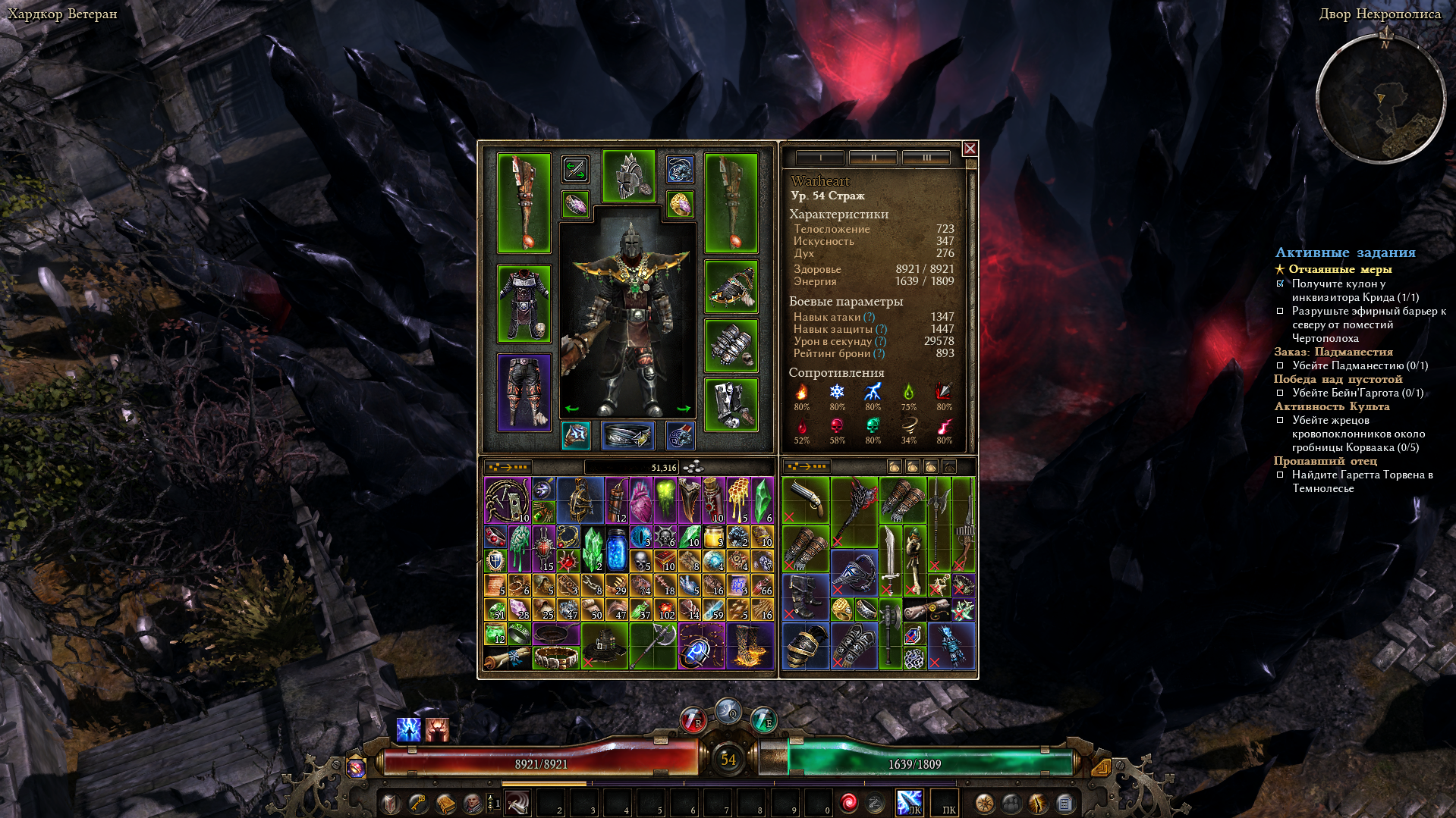 https://www.grimtools.com/calc/b28Y3JpV Вот мой билд кста, пока в порядок не приводил особо, пока сетовых шмоток нет. Только странно, что резисты к молнии и яду не полные, у меня они в игре 80 и 88 соответственно.
