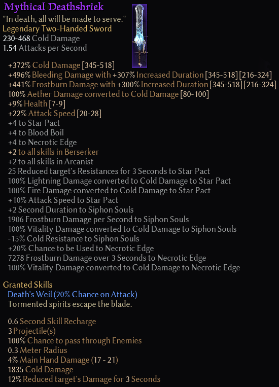Потом можешь в двуруч спекнуться: вон я выше билд кидал, вот чем-то таким с 70-го и играю, уже 96-й. Логхорена и алкамоса на абсолюте убил и не почувствовал. Немезид надо поискать и отсосать
