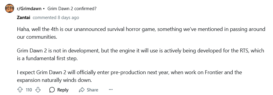 https://forums.crateentertainment.com/t/grim-misadventure-190-they-see-me-rerollin/144364 Подвезли официальный рерол аффиксов и суффиксов на зеленых предметах, так что в дополнении все будем бегать в двойной зелени.Один чел на форуме там сказал что типо это убьет игру, на что Зантай справедливо заметил что игре уже 9 лет и ничего страшного не будет, в чем в принципе я с ним согласен.