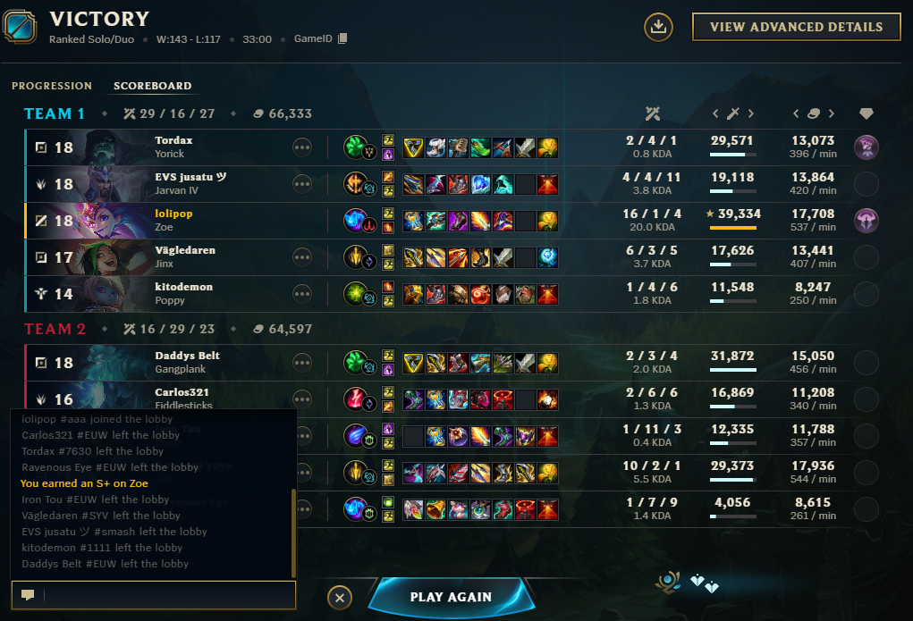 >>50077581 До переезда на Ру был в Д+, после переезда на вест я забросил ранкеды и отыгрывал по 50-100 игр в сезон, а в этом сезоне у меня часть лузов тупо из-за того, что я не мог зайти в матч со всякими Запретами, лагающими VPN'ами и прочей хуетой и получал ебейшее пенальти чуть ли не по -40 LP за катку