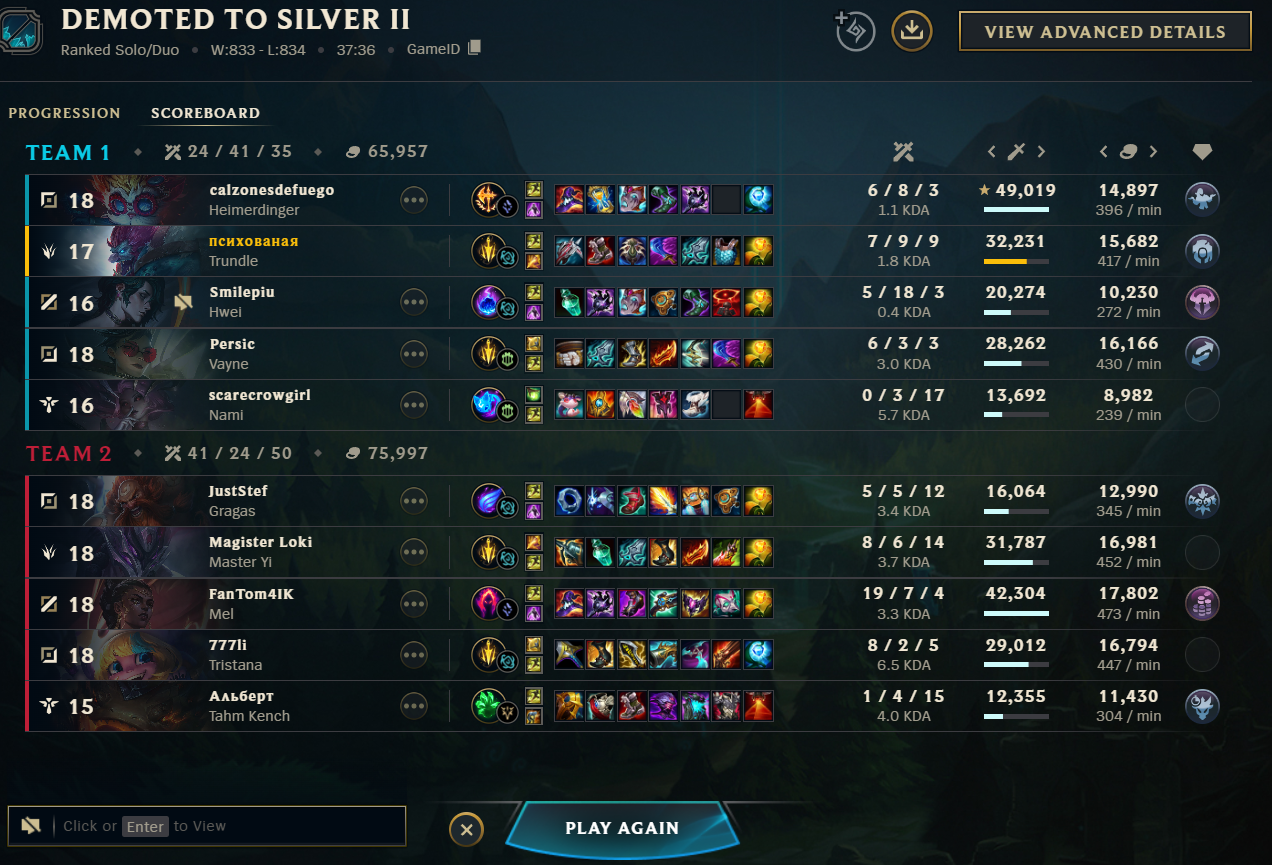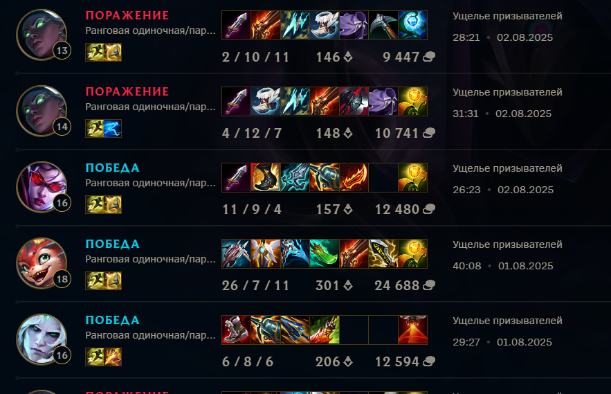 А как вообще играть на ру серваке? Тут же просто школьники ссаные и руинеры по кд и это не троллинг, во первых мертвый сервер, где кидает в одну тиму бронзу и золото или платина против серебра. Ту в общем вы поняли поиск по 5 минут и абсолютная мертвечина. Так еще и нытике, которые не могут в командную игру и фидят по кд. Я всю жизнь играл на весте, на адк там вообще рай играть, т.к. везде примерно есть вижен, а на ру просто черная карта и тебя сидят в кусте ждут, т.к. тут стиль игры такой. Тут нет драк 5х5, потому что кто-то фармит на другом конце карты и на объекты не стягивается. Я еле еле апнул золото 2, но потом опять пошло вниз. Вообще неважно как я играю и на ком все игры уже заранее предрешены т.к. тебе кинет жесткого руинера, который еще и выйти из игры может