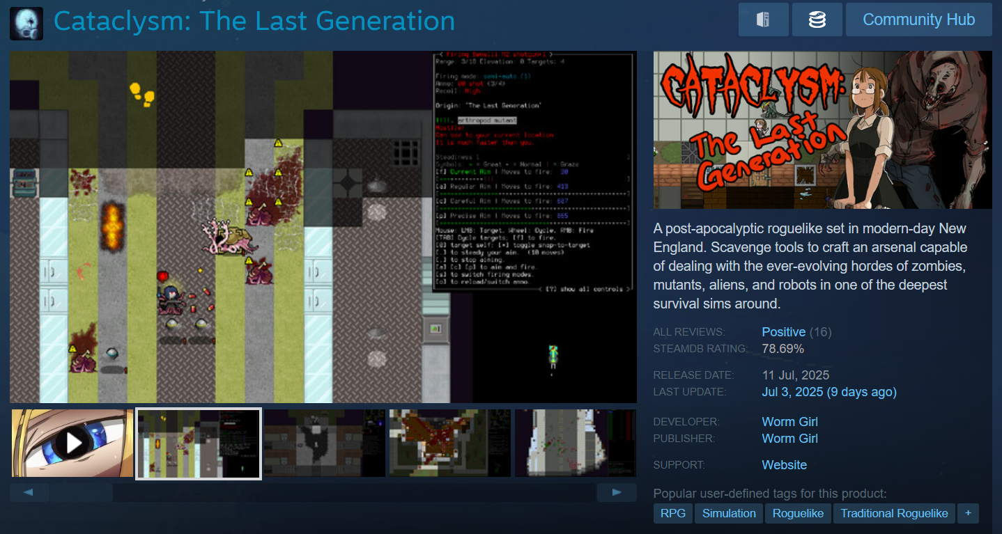 Cataclysm:DDA слишком хардкорный и аутичный, я такое не люблю. Cogmind туда же и сеттинг вроде не подходит. Nuclear Throne задрочен и в ней нет РПГ/выживача. Сеттинг клевый, графика, звук - все по кайфу, но это просто слишком примитивная (и бессовестно сложная) аркадная пострелушка. Был какой-то клон FTL, но про конвои машин в постъядерной пустыне, но мне вообще не нравится FTL.