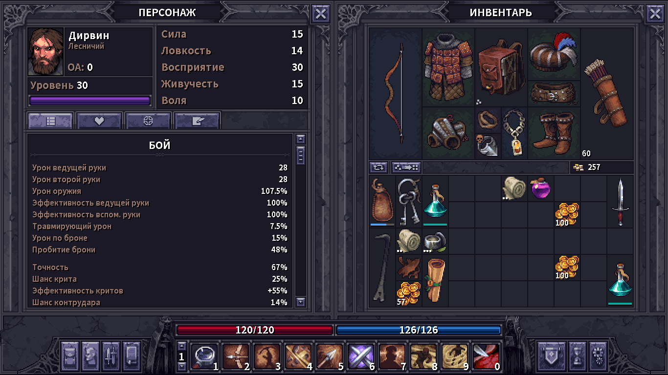 Ну а как стрелок, то все до скуки просто, пукаешь всем что есть и кайтишь рывком и отвлекающим выстрелом, стараешься инициировать файт с дальнобойного выстрела самого опасного врага, ибо это считай гарантрованный минус враг. С перком атлетики тебя уже никто не сможет догнать, а за счет регена маны с критов из пассивки ведения боем и от дебафов из атлетики у тебя практически не будет кончаться мана. Ну ладно, будет кончаться, но придется постараться, однако ее легко можно восполнить финальным ударом.