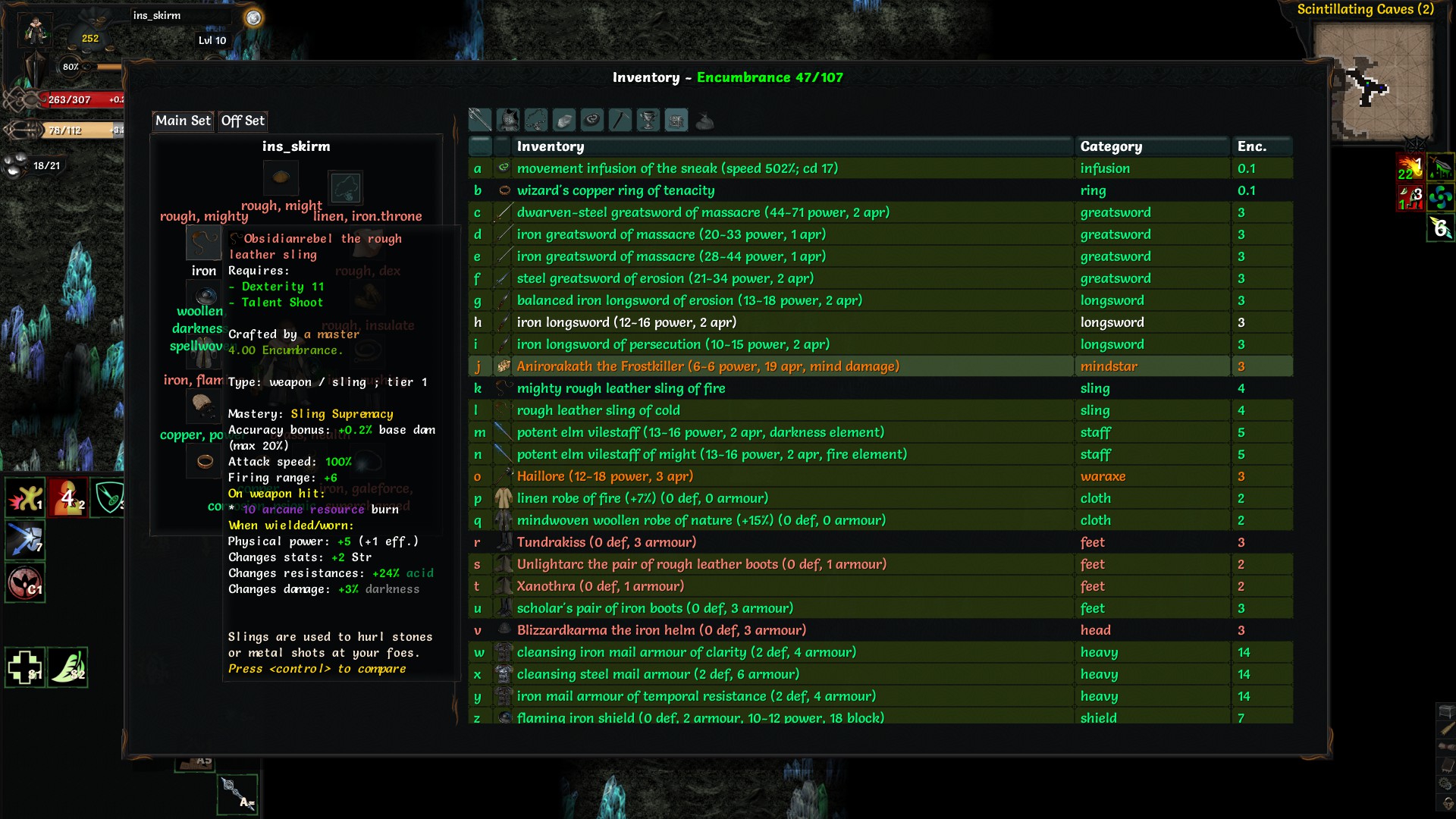 Физурона маловато, хотя червя без проблем прошел. Вообще, повезло найти Неприкасаемого и уник пращу 5го тира, как бишь её, эйдорал ласт резорт кажись. А так бы, наверное склеился в крипте.