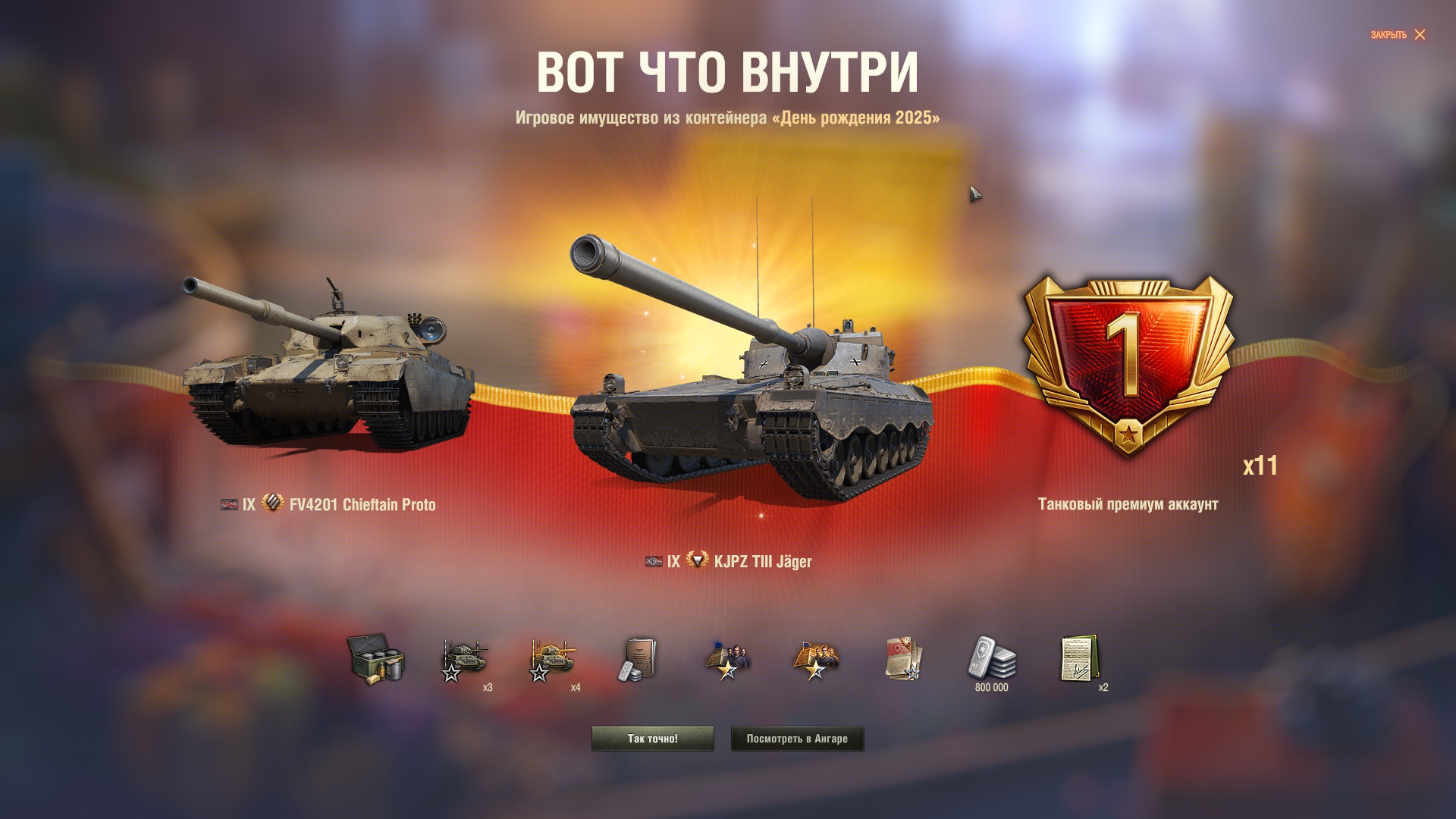 Как всегда, праздничная акция оказалась с большим подвохом. Так называемый "Золотой вагон" опустошился за несколько секунд. Я хотел по 240k серы обменять билетики, но пока нажимал на кнопки обменял уже по 360k. Хотя начал строго в 20:00, в ту же секунду. Золото пустил на заебавший меня Зов Сокола. И не прогадал, мне выпало два танка - 68 и Сокол. Наверное многие знают как работает вероятность открытия контейнера в этой игре: чередуется гарант и раннее выпадение. Вот так и мне выпало: сначала сокол гарантом, потом немец где-то в 24 контейнере. Что касается боксов на ДР, мне они мало интересны, сейчас ковыряюсь по остаточному принципу, и кстати золотые билетики теперь хуй выпадают. А как у тебя проходит праздничная акция, Антоша?