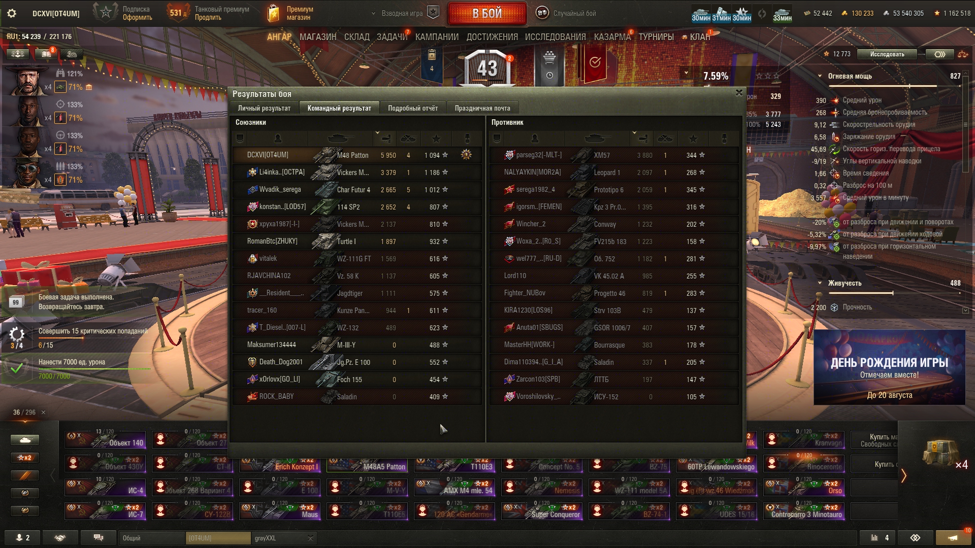 Что-то сегодня танкисты были не такими щедрыми на коробки, как до этого, хотя были бои с хорошим насветом и уроном, как на 10, так и на 8-9. Кидайте ники на добавление в друзья в тред или сами добавляйте DCXVI. После др можете просто удалиться.