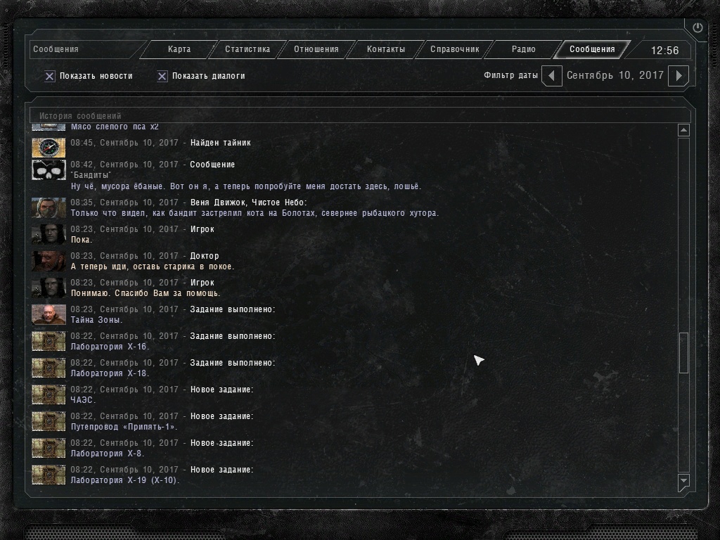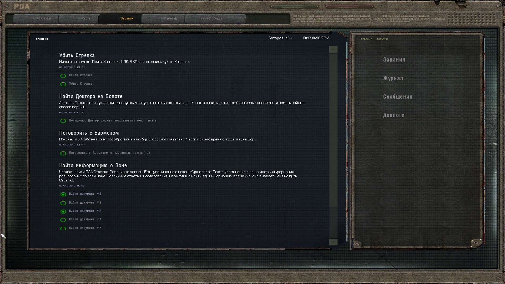 После небольшого перерыва продолжаю прохождение. Сходил за артефактом по наводке Галоша и таки связался по рации. Еще тут из интересного прокачка и адаптация интерфейса