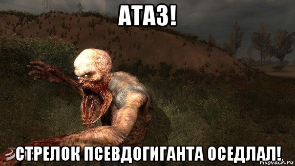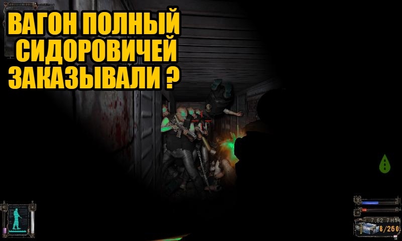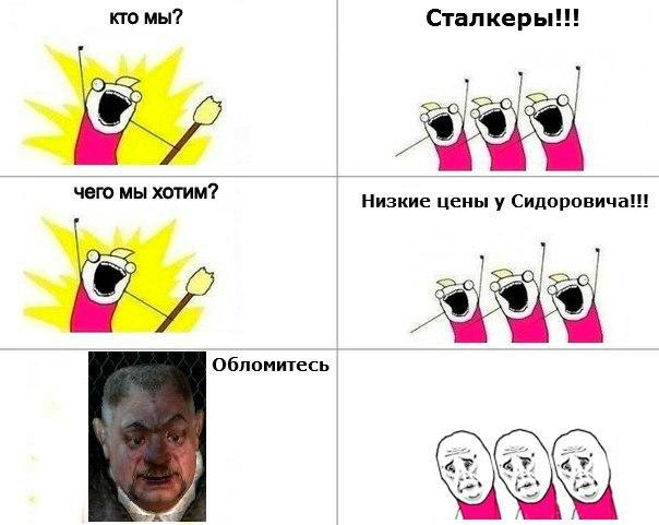 Поспорили трое заик, что купят у Сидоровича товар, и не заикнутся. Подходит к торговцу первый, быстро говорит "ПМ". Второй подходит, и быстро говорит: "Водка". Третий подходит, и быстро говорит: "АК". Сидорович: - А тебе какой, 47 или 74? - К-К-К-К-КОЗЕЛ!