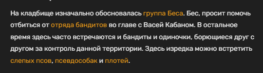 > И почему-то кроме кота ничего даже и не думали реализовывать Зачем это реализовывать если это явно противоречит детям зоны? Ты эти сами доки читал? Приведешь примеры в самом olr 3.0 где была реализована именно фанатская идея? Тем более ты сейчас неиронично будешь сраться за видение автора мода, который по своему скомпилил идеи разработчиков в определенный период разработки? Ты шизофреник? Ты забыл в чем идея мода? Я напомню что тема, которую ты развернул начиналась с вырезания конкретных фич мода. Если ты реально копротивляешься за изменения неофициальных патчей, то это вообще никак не соответствует с твоей указкой на идеи выше. Ты просто пишешь нерелевантную к моду хуету.