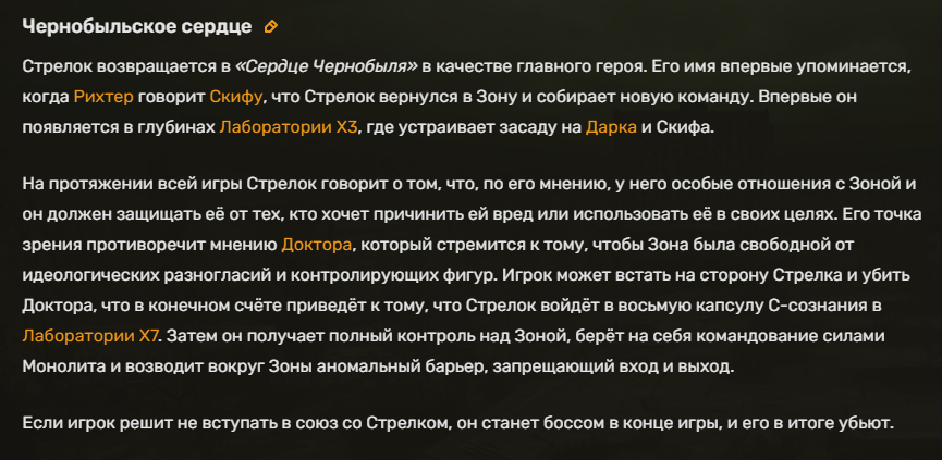 >>50100555 Где? Покажи. На ру вики в статьях по трилогии упорно игнорируется Сталкер 2. А в статьях по Сталкер 2 игнорируется трилогия. Буквально доходит что чуши, что в статьях, скажем, о Стрелке или Сидоровиче на вики по трилогии "Появляются в таких-то частях" без упоминания в С2, а на вики во С2 "появляется в С2", будто бы в трилогии не было ни Сидора ни Стрелка. Это полная чушь и бардак. Не знаю как на мове, но на английской вики что-то такого нет, может потому что у западных фанатов не припекает жопа со сталкера 2?