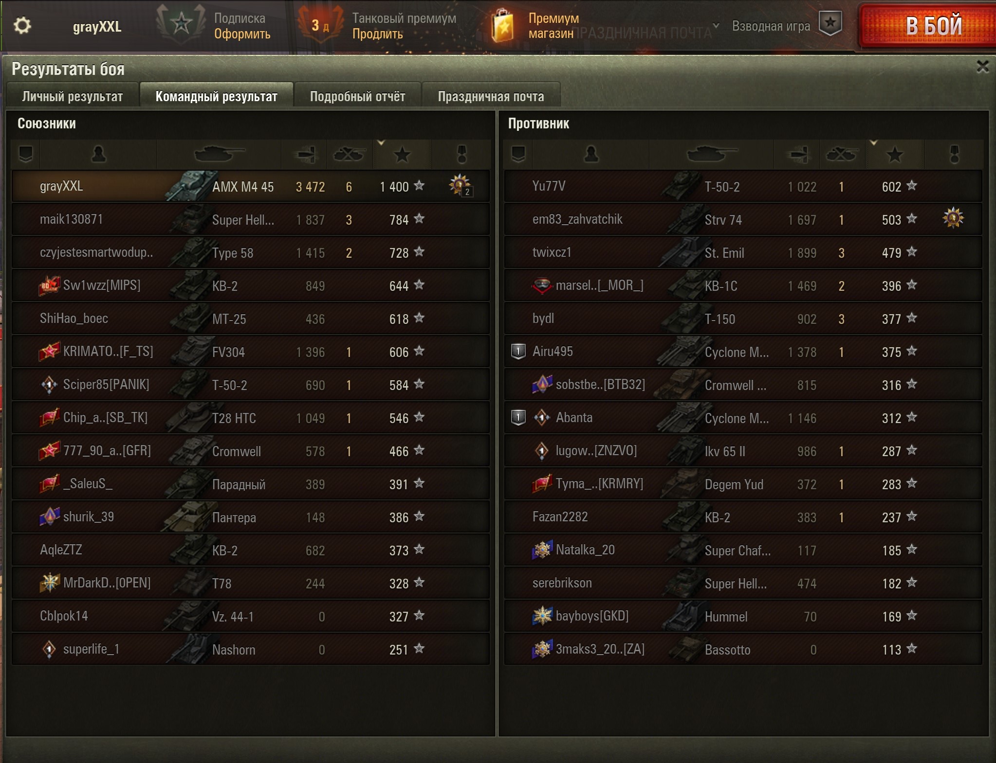 Ну чувства смешанные. Танк для взвода подходит идеально, привезти тушу в 2600 хп со скоростью 50+ км в час даже в горку. с вводом точности буквально заиграл по новому. Главное не ставить последнюю полевую на минус парочность модулей, потому что и гпт и бз оба страдают тем что всякие яги/е4 им взрывают бк с первой тычки. Очень хочется поставить закалку, но без турбины танк даже на турбине(лол) не едет. Ну и вечное выбивание заряжающего в лючки, из-за чего ты не можешь переключить снаряд на интуиции. Очень сложно что-то противопоставить 11 лвлам, если ты пиздишься с ними 1 на 1. особенон 279, т.к. танк тот ещё карлан. Очень похож гемплейно на поляка, ведь ты и там и там вызжая очкуешь получить в ответ и противнику даже ничего для этого делать не надо, просто стрельнуть в зелененькое.