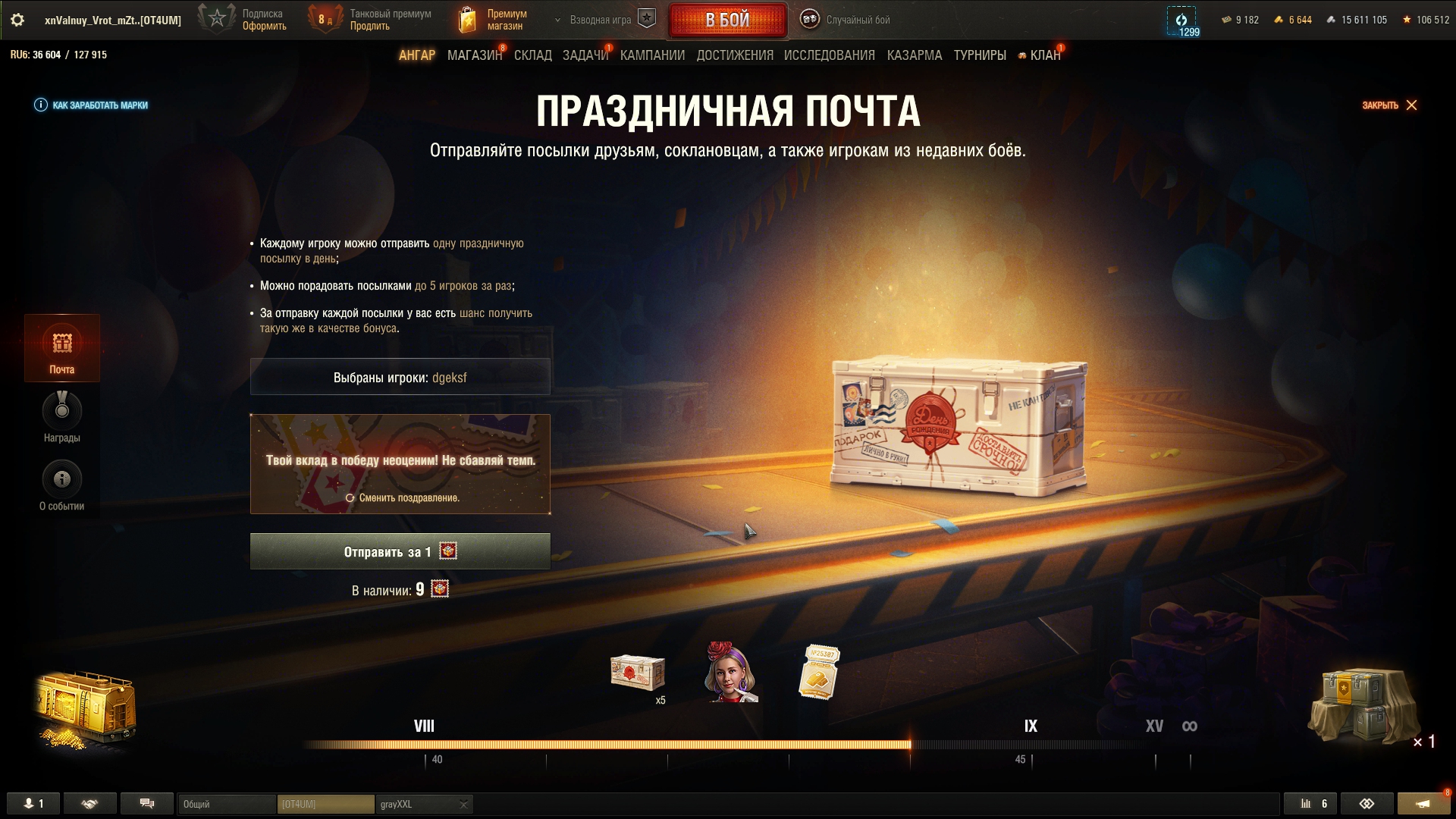 зашел в игру дали 4 дня према но так впадлу играть конечно а главное зачем, то что я открываю календарь каждый день до 31 числа получу 4250 бон с нихуя и1500кумпанентов и по мелочи всякой хуйни, зачем мне играть ради 1500 бон и говнопремтанка? вот и я думаю отдохнем до рубикона сентябрского даже витя кислый пообещал что то особенное.