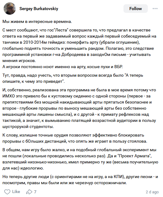 Мув с "разворотом" подтверждает все опасения относительно невменяемости админов пиратки. Выпускать сырой патч на основу в стиле а давайте месяцок попробуем поиграть вот так со множеством сырых изменений это занавес. От вас просили только убрать стан от арты, чтобы артаводы не бухтели накинуть им урона. Вместо этого они всё в лучших традициях пиратки поперепахали. Какое улучшение точности, вы чё пьяная алкашня творите. Весь баланс между танками, между классами техники на точности строится. Куда вы свои грязные ручки суёте. Просто ничего не трогайте в этом 8 цилиндровом V образном двигателе Феррари. Уберите ебанутого Кузьмича от сложного аппарата. Разворот у них ненормальных. Мне тест сервер на основе не нужен.