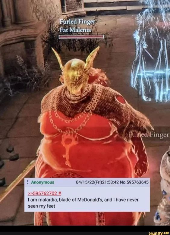 >на мужика лицом к лицу с божеством встал за каменной плитой которую обычный человек и не поднял бы и честно снес все удары как и подобает будущему элден лорду >чмондель и сучка >прыгал и перекатывался весь файт как петушоникс в перерывах тыкая пидорской рапиркой/катаной >человек прошу отнестись с пониманием и не путать более