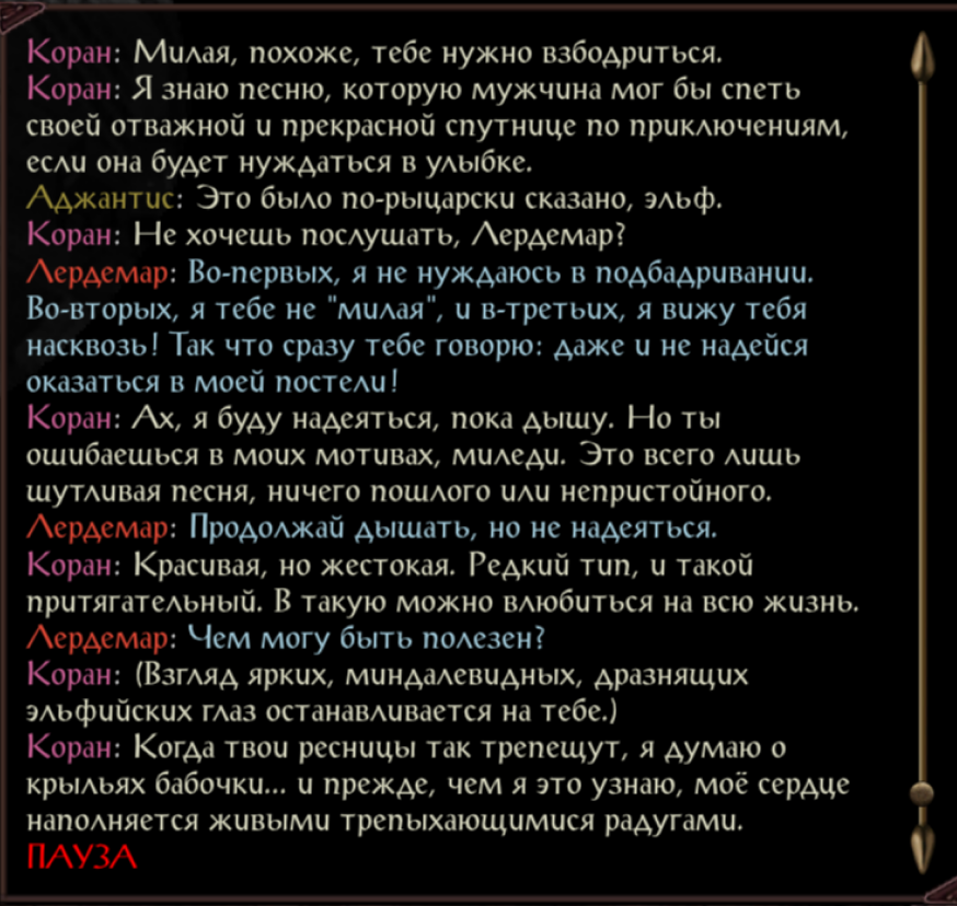 Ты нихуя не играл. В игра такого в игре почти нету, зачастую ГГ общается в виде защищающегося от обстоятельств вообще, он не доебывает всех слишком тупыми и абсурдными вопросами как гг DE. Мир Планескейпа то полностью сформирован и работает по определенным правилам, когда в мире DE серость это то одна хуйня, то другая и воздействие от ней хуй пойми что такое. Там лор только каких-то островов, вкрапления от государств и конфликты в Ревашоле были хоть как-то расписаны минимально.