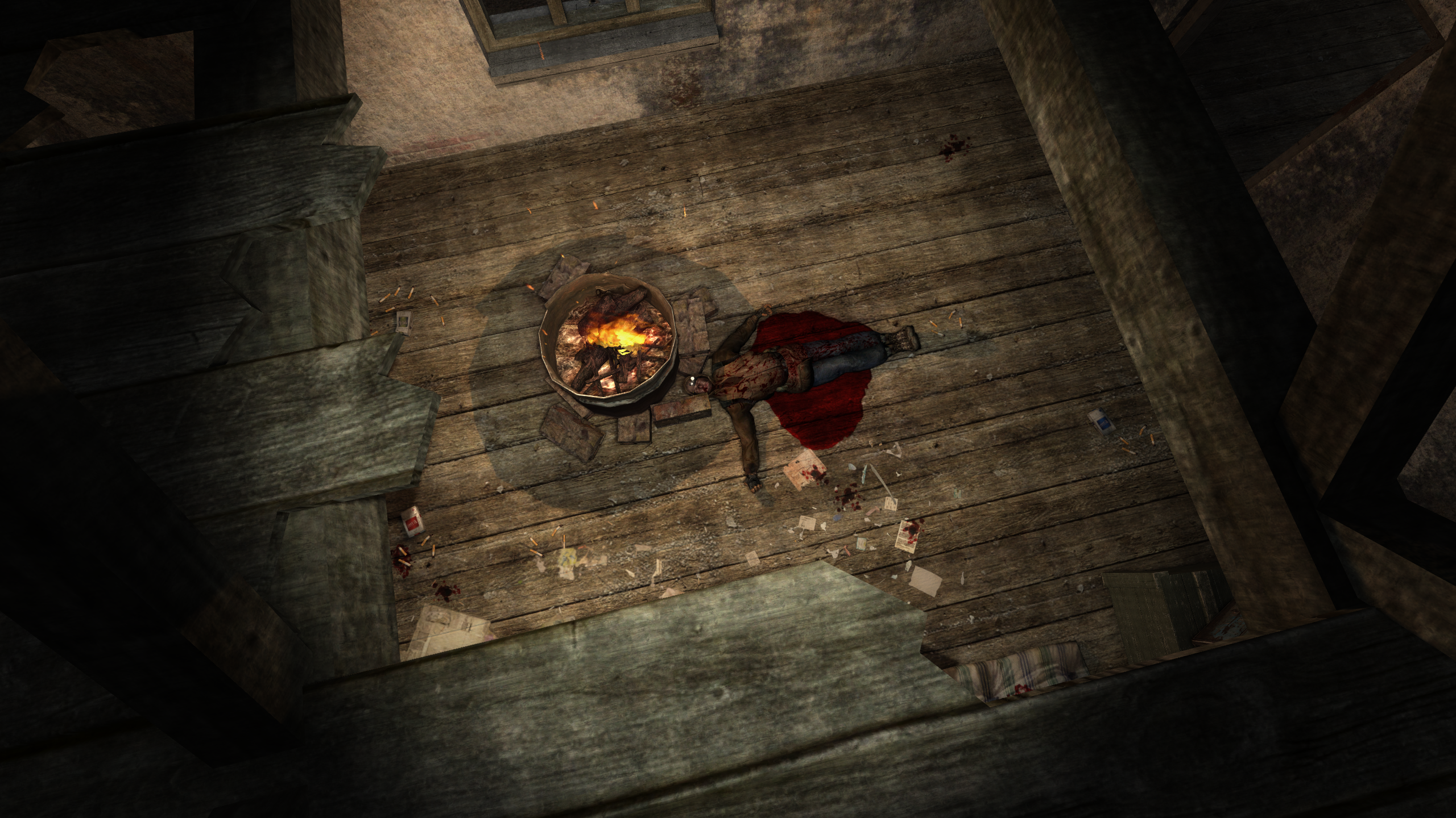 Решил схитрить - попробовать заранее зачистить один из квадратов, когда старое задание уже сдал, а новое еще не взял. Тогда, по идее, появился бы автосейв, когда я уже нафармил немного опыта. Не сработало. Но зато немного поизучал окрестности. В частности, столкнулся с трупом бандюка, которого сам не трогал.