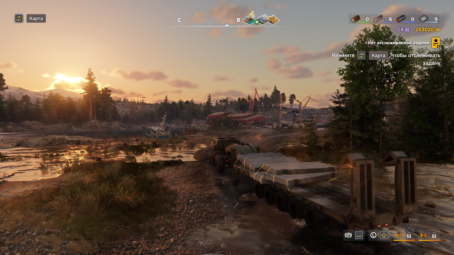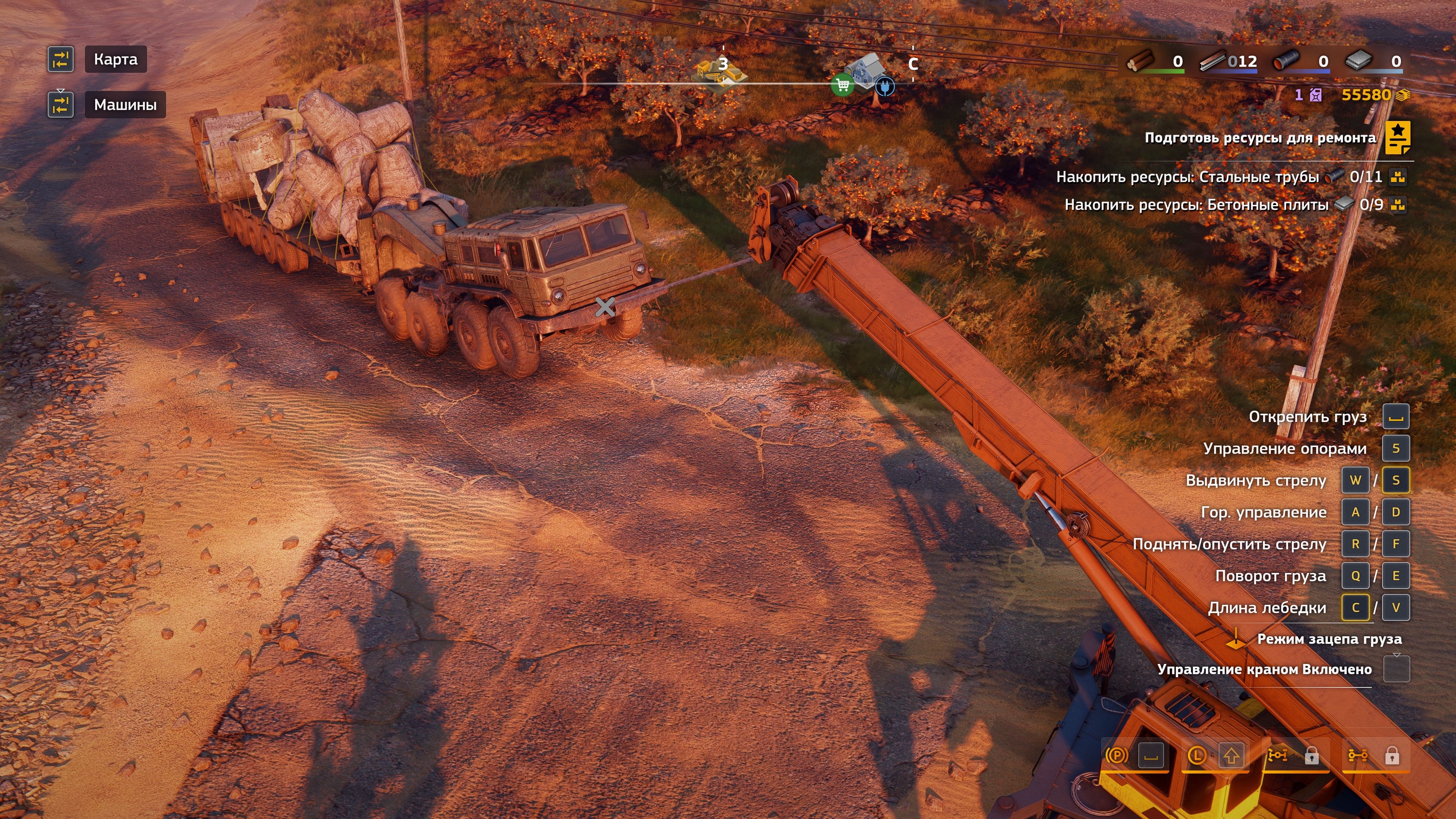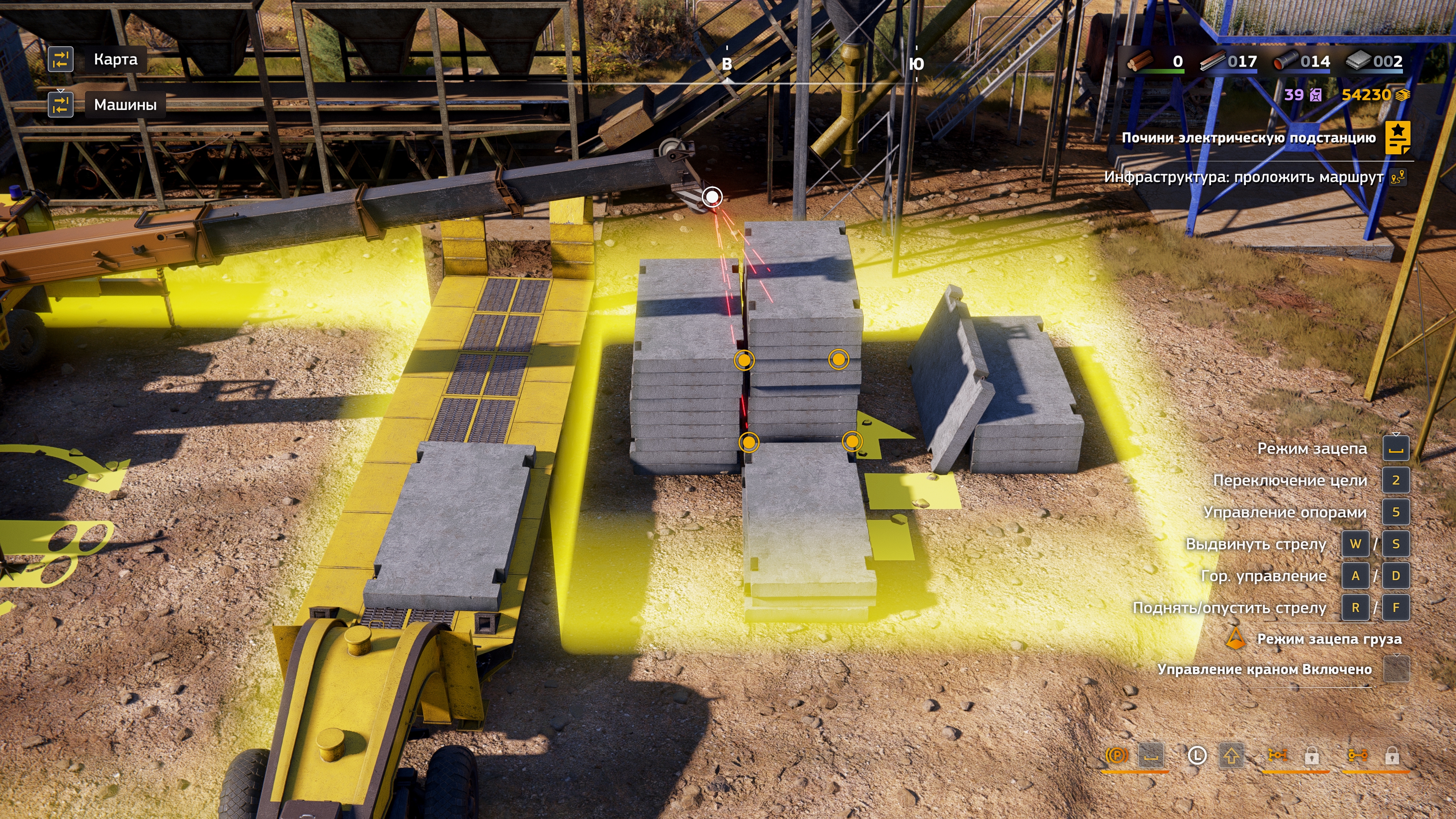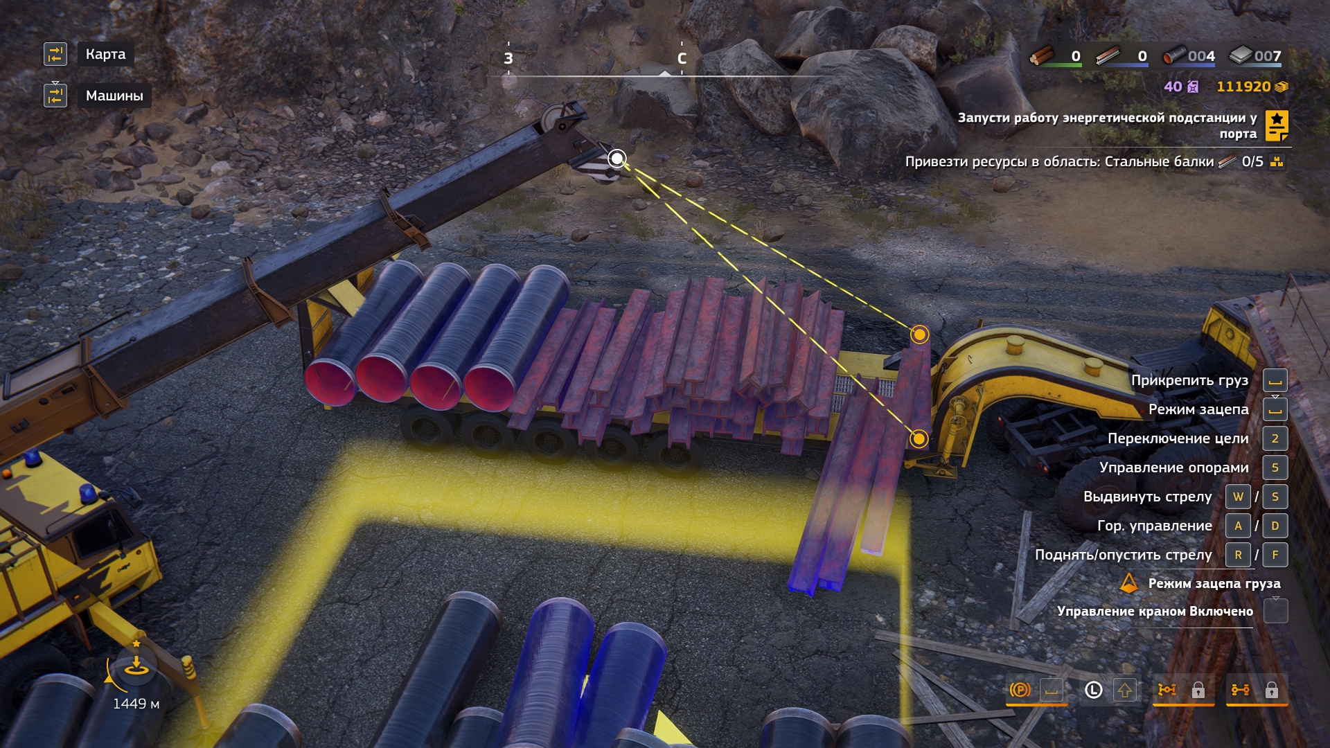 При подобном способе погрузки если у тягача включен двигатель, то от тряски начинает ебать коллизии и все рассыпается, кнопку выключения двигателя выпилили, ладно, выключить можно через выход в меню. Дальше начинаешь пощелкивать цель для захвата и промахиваешься, а кнопки промотать цель назад тоже нет. Но чисто технически, если выйти в меню, то цель установится ближайшей к стреле.