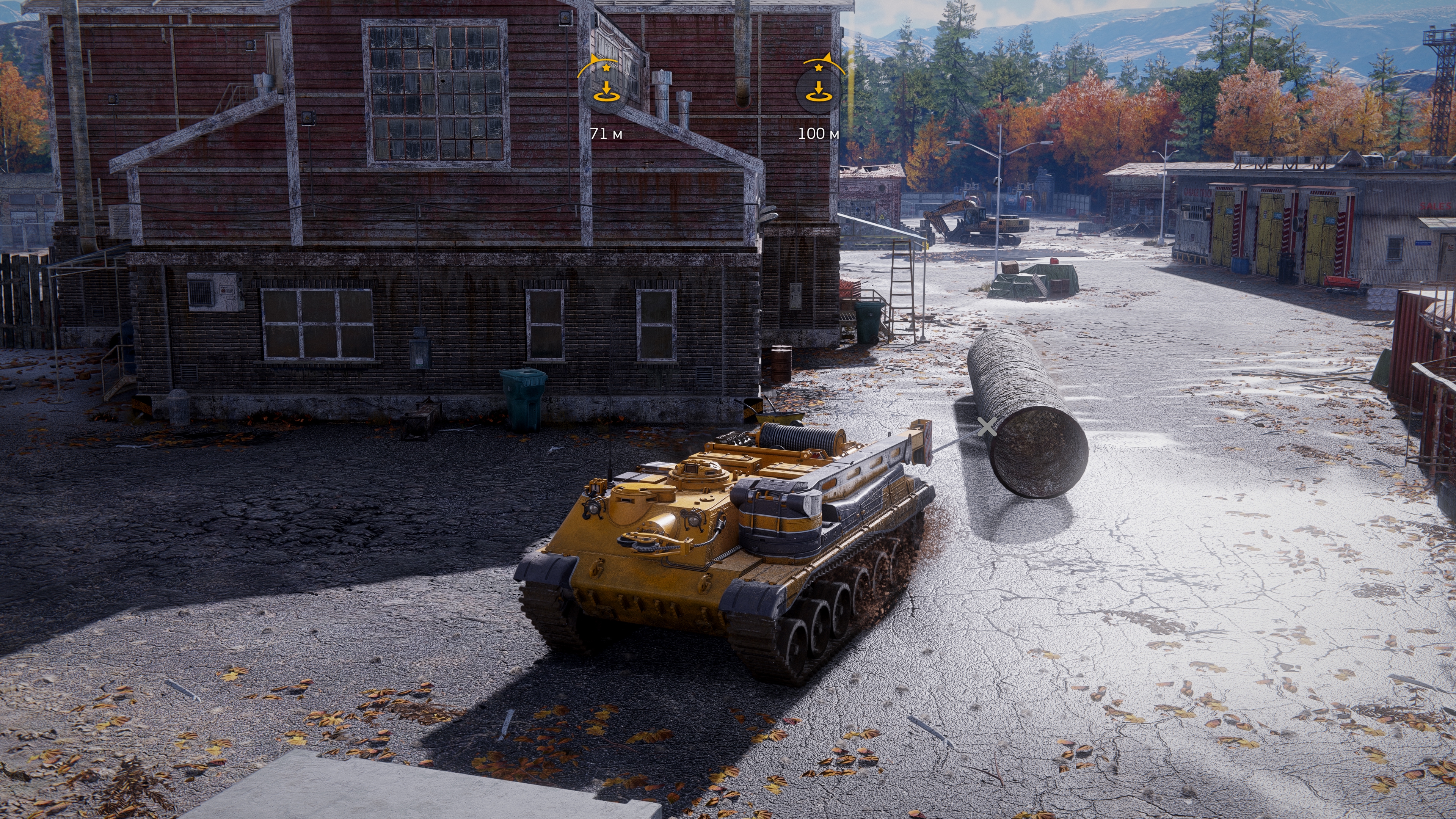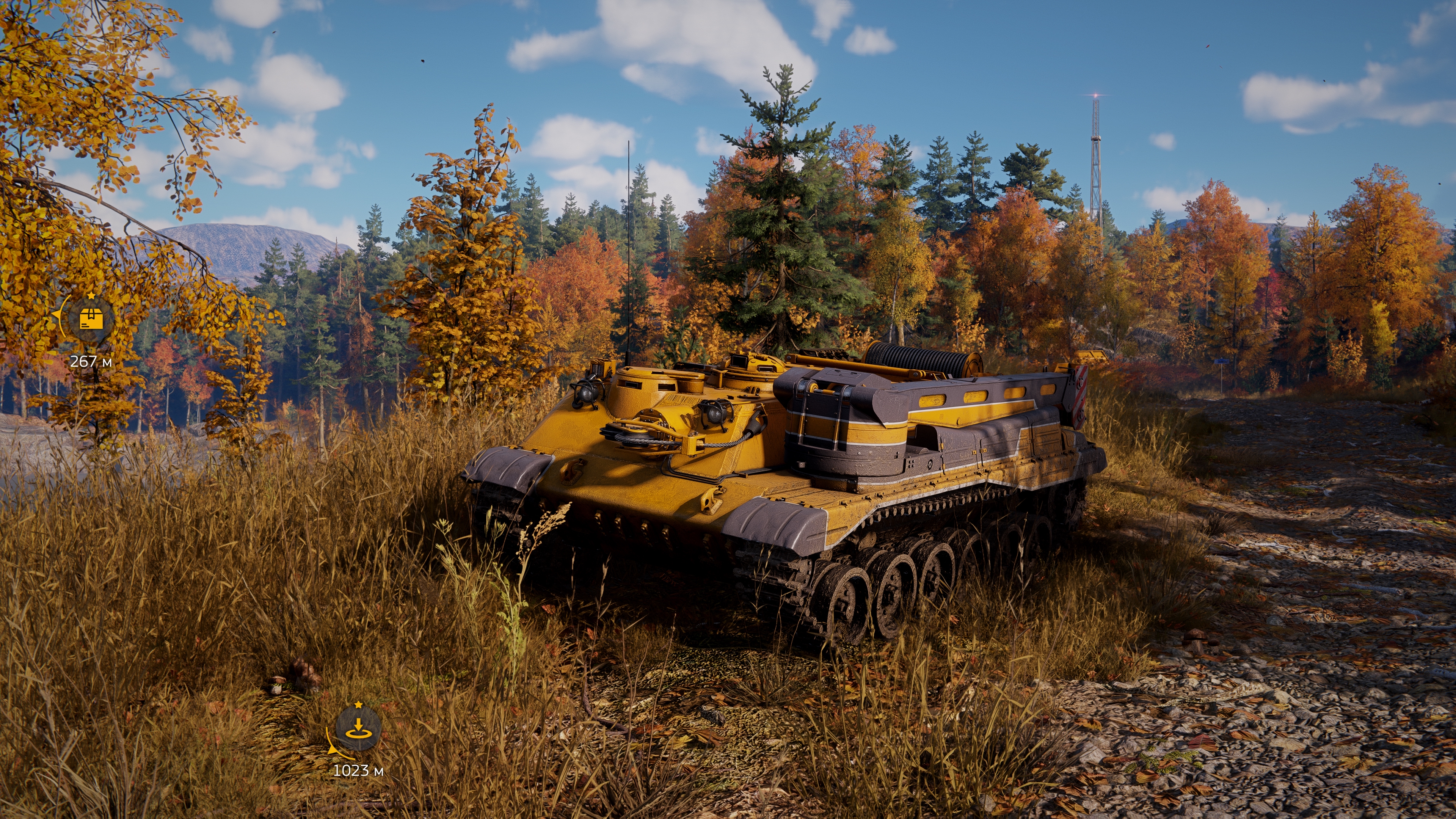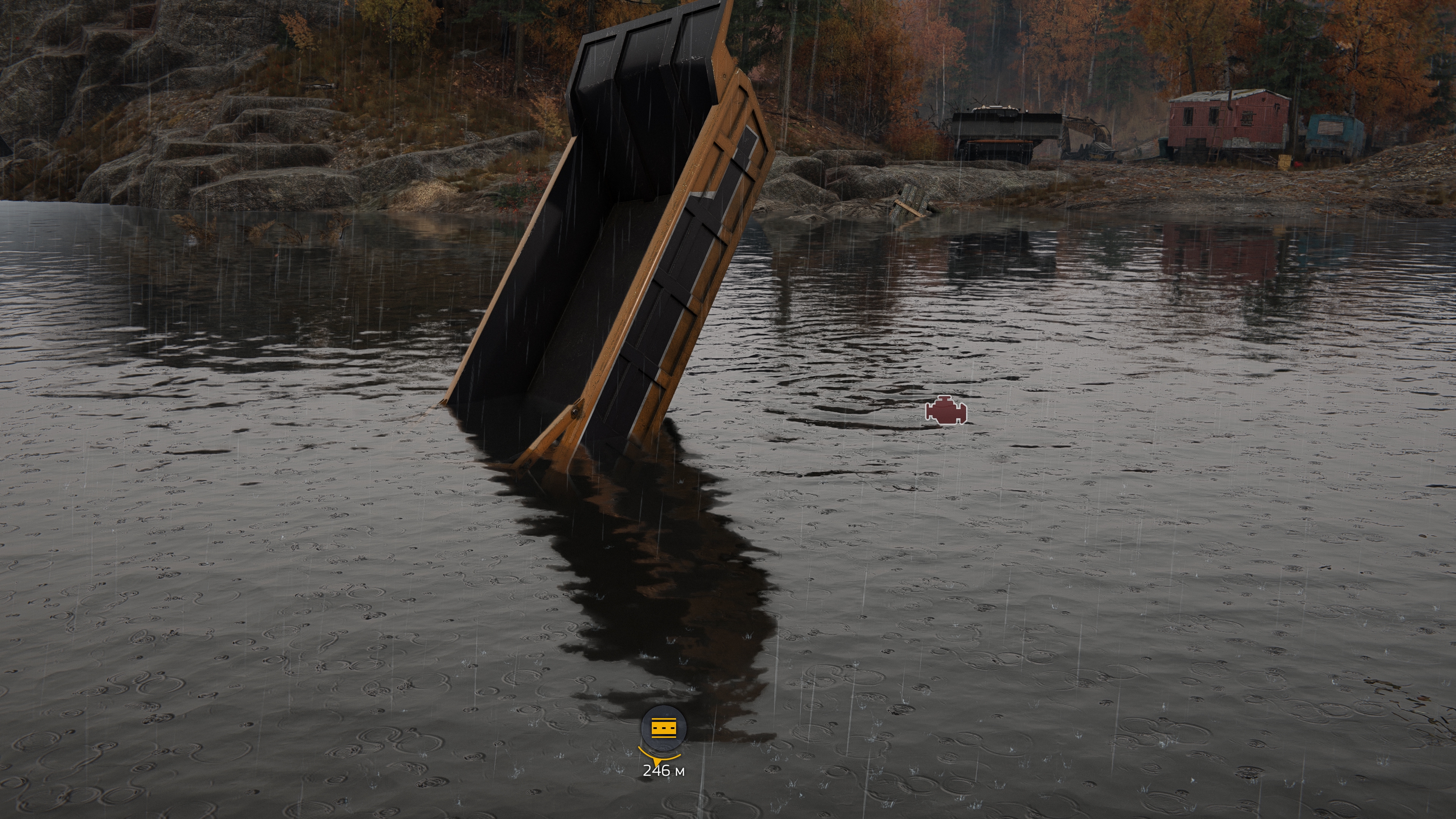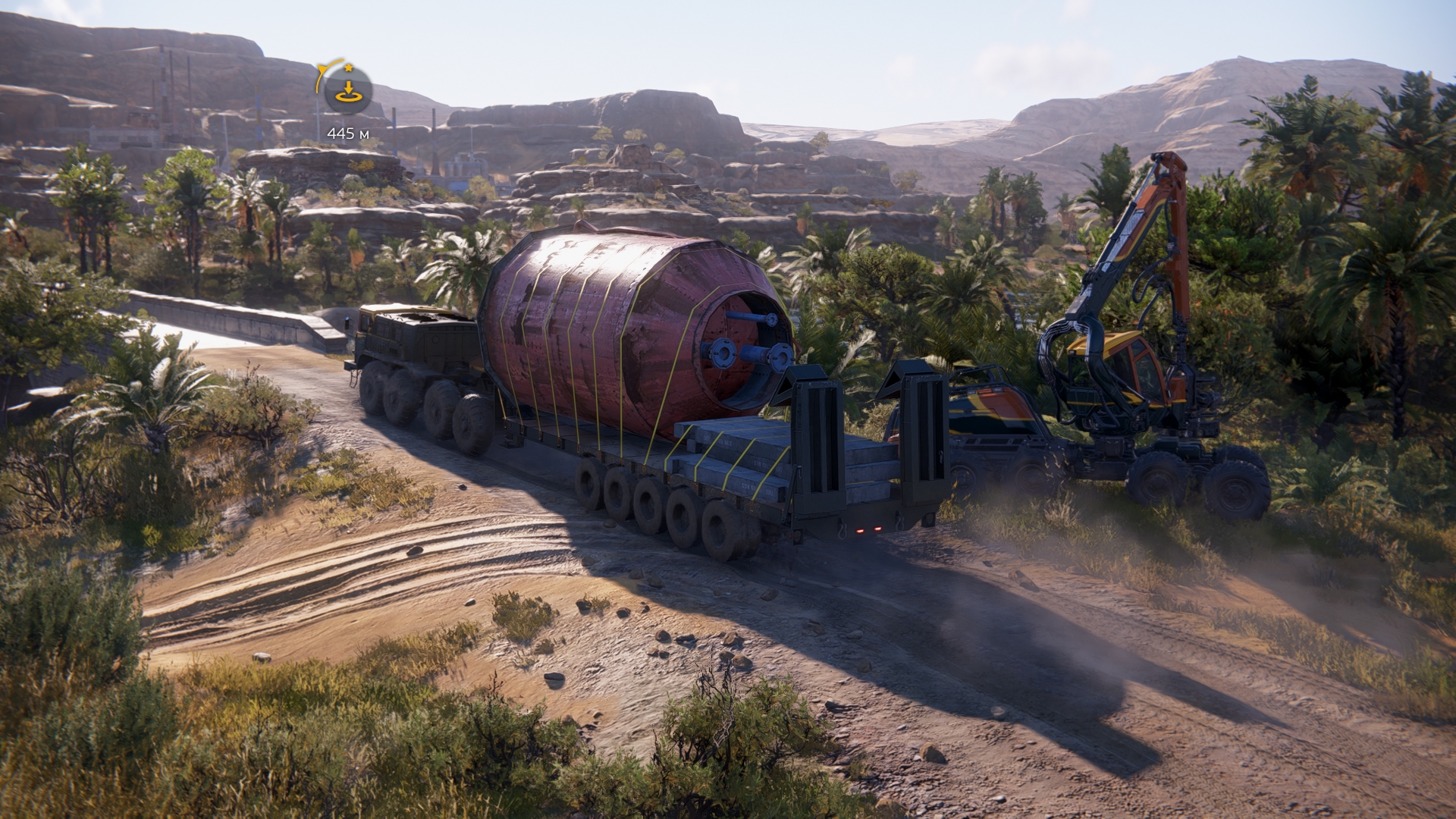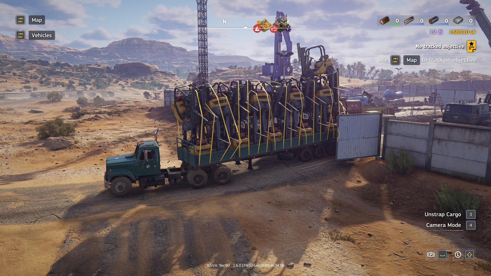 При подобном способе погрузки если у тягача включен двигатель, то от тряски начинает ебать коллизии и все рассыпается, кнопку выключения двигателя выпилили, ладно, выключить можно через выход в меню. Дальше начинаешь пощелкивать цель для захвата и промахиваешься, а кнопки промотать цель назад тоже нет. Но чисто технически, если выйти в меню, то цель установится ближайшей к стреле.