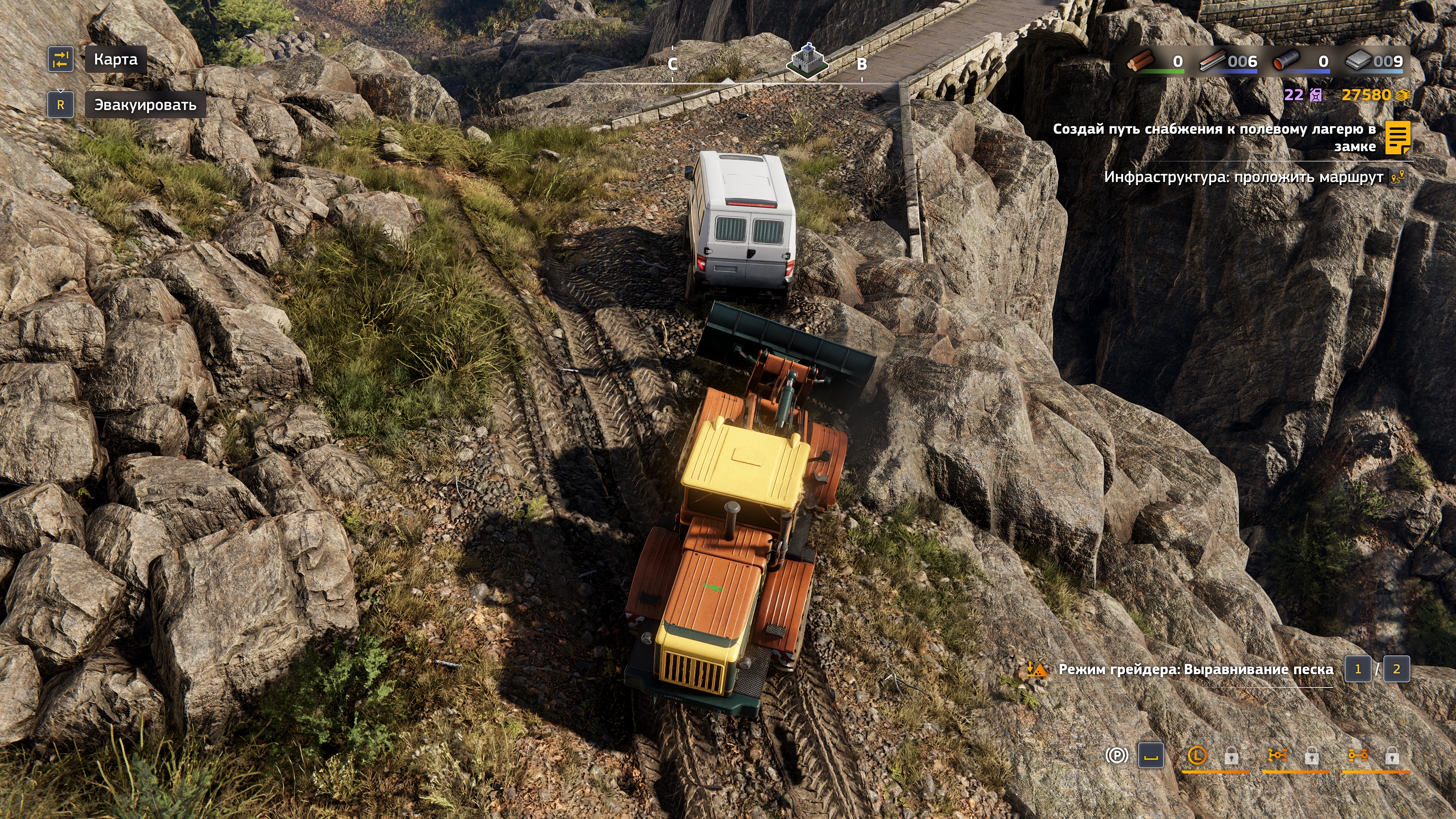 >>49884903 Хз, плюс-минус тоже самое, может попроще в чем-то. Прикол в том, что тебе больше не надо заниматься гомоеблей в грязи, если ты видишь болото - берешь самосвал и засыпаешь к хуям, а потом бульдозером ровняешь. Дальше прокладываешь маршрут, чтобы рабы уже по ровной дороге могли доставить груз. Появился смысл в джипиках, которые могут пронырнуть где угодно. Ты просто по-бырому исследуешь путь, и смотришь где можно проехать, где нет, фиксишь дорогу в нужных местах.
