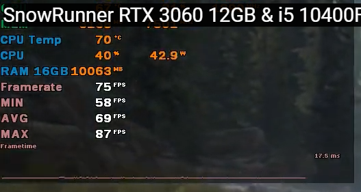 >>49886655 >Snowrunner пахал на ультрах Мне кажется, он ёбнутый. На днях его запускал, на ультрах ловил около 70 кадров, но в кабине просадки до 60 были, что странно и хуй пойми почему. На около высоких в роадкарфте я имею около 40-50 кадров, но с фср3 до 75 своих дохожу. Из-за него правда интуплаг появляется, но привыкаешь, один хуй не шутер и мышкой не дрочишь резко во все стороны. У меня сноураныч ещё и фризил на ультрах, в роадкрафте фризов нет. И графика офк куда приятнее в рк. Ещё что приятно, зеркала фпс не отнимают, в отличии сноурана У меня 7600, почти аналог 3060