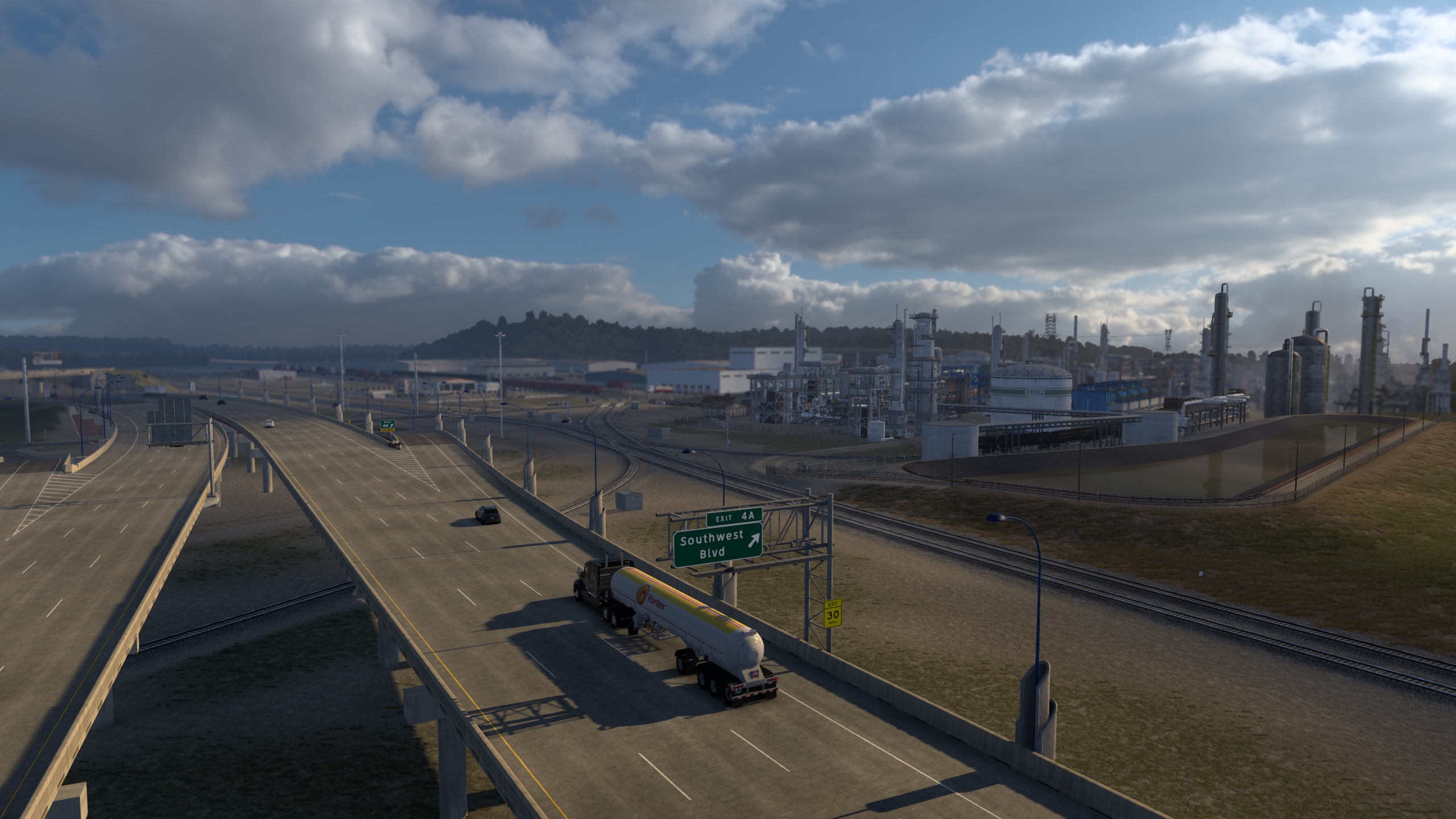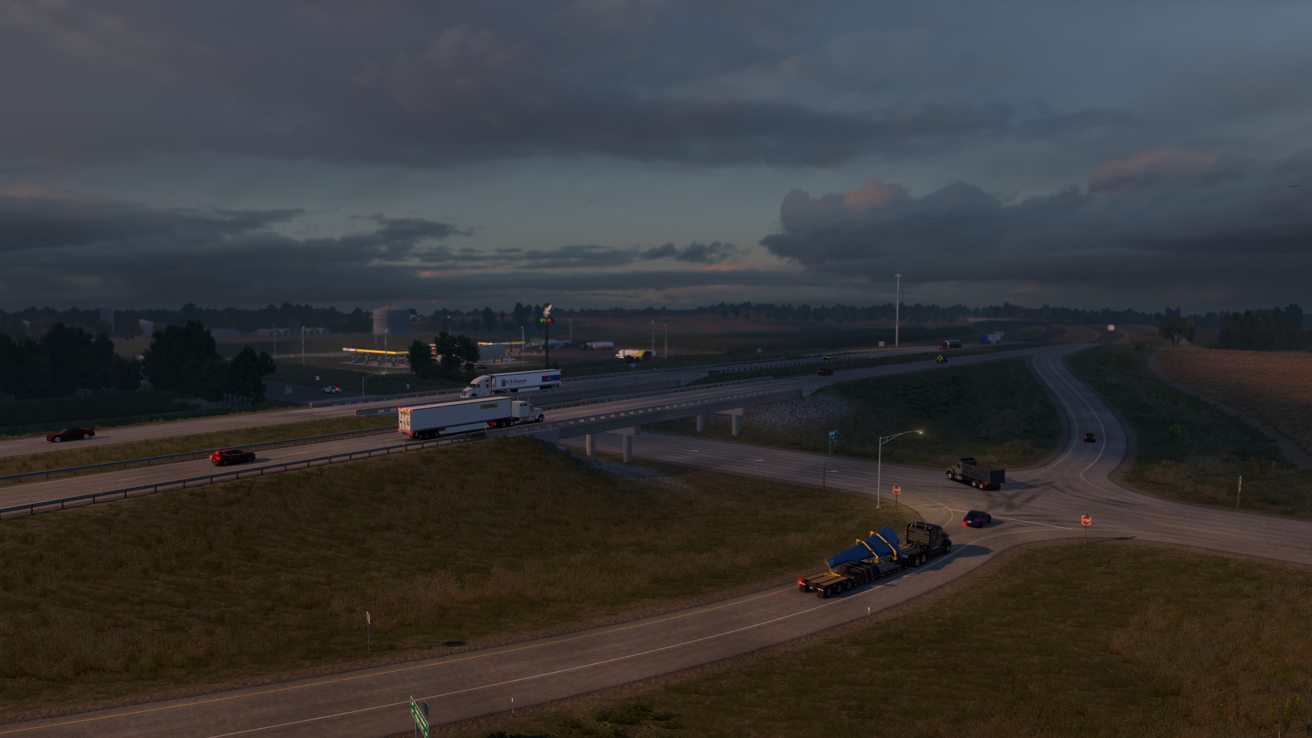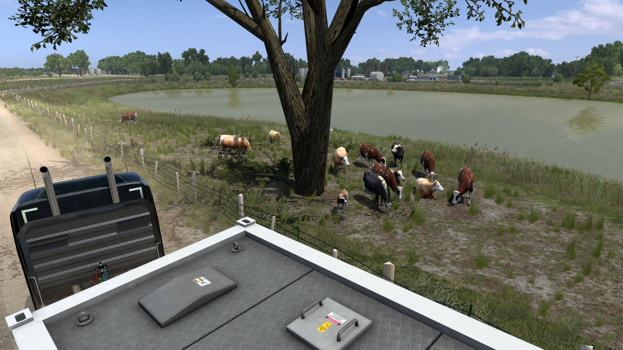 >>50095029 Покатушки по Айове в рамках ивента закончились. Как и планировал, стяжал в инвентарь плюшевого порося на сиденье. Вот только в питбуля его пока не положить, придётся ждать, пока автор добавит прописку для него. В целом штат довольно приятный, много красивых мест и достопримечательностей, в частности, самый большой тракстоп Iowa-80 и самые большие (не знаю, правда, в сравнении с чем) бункеры-зернохранилища.