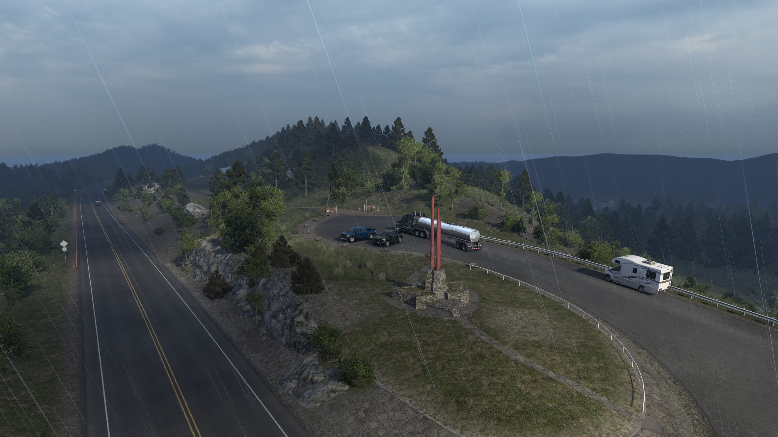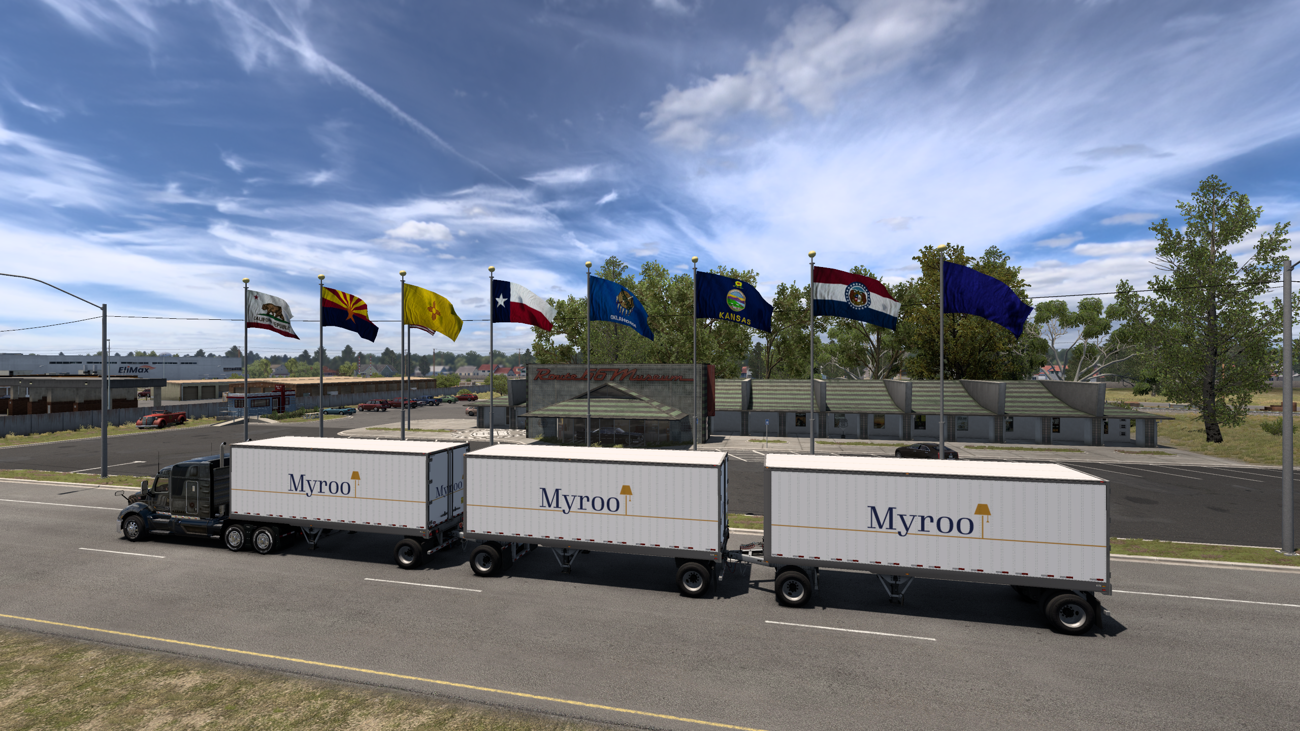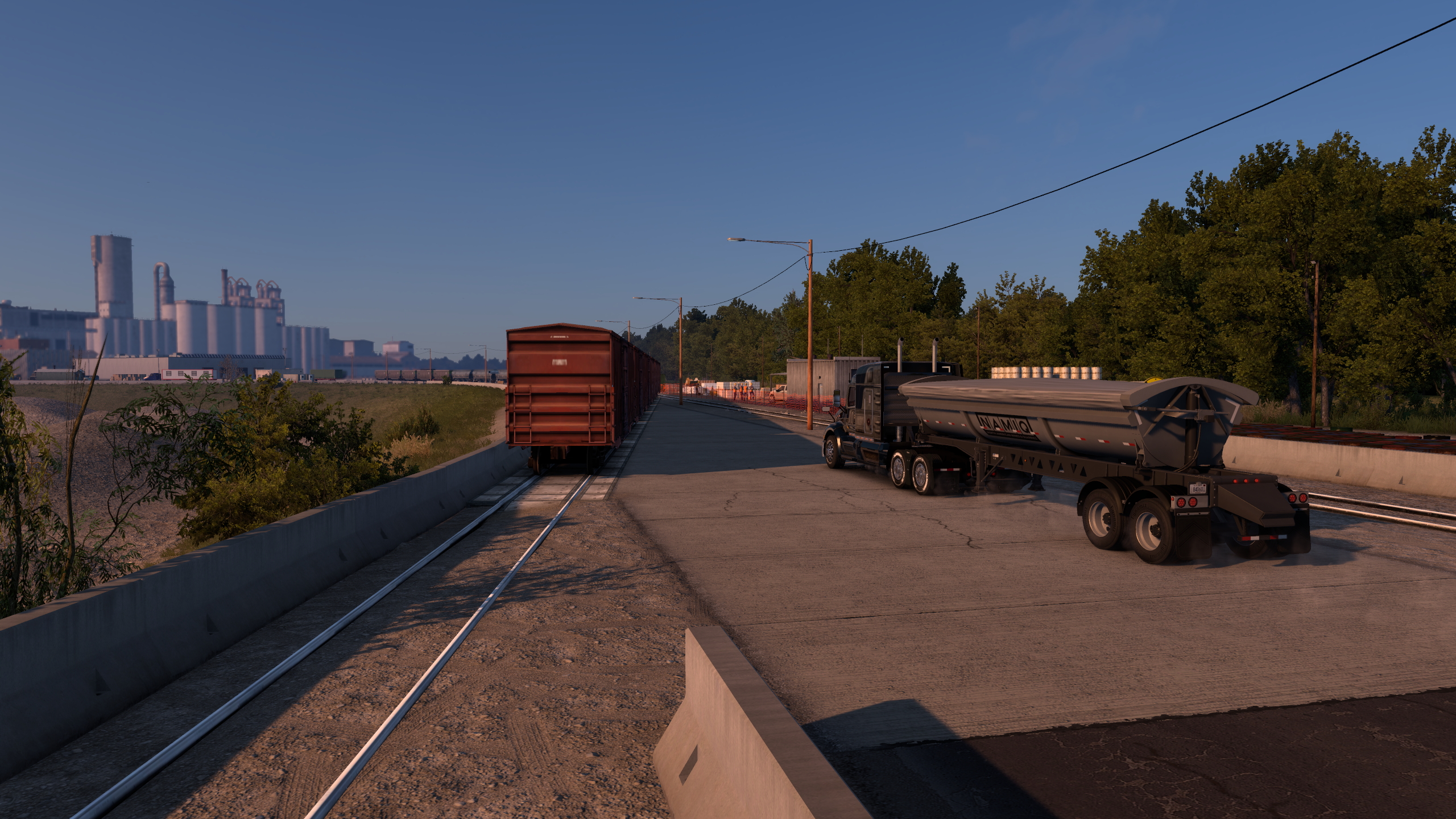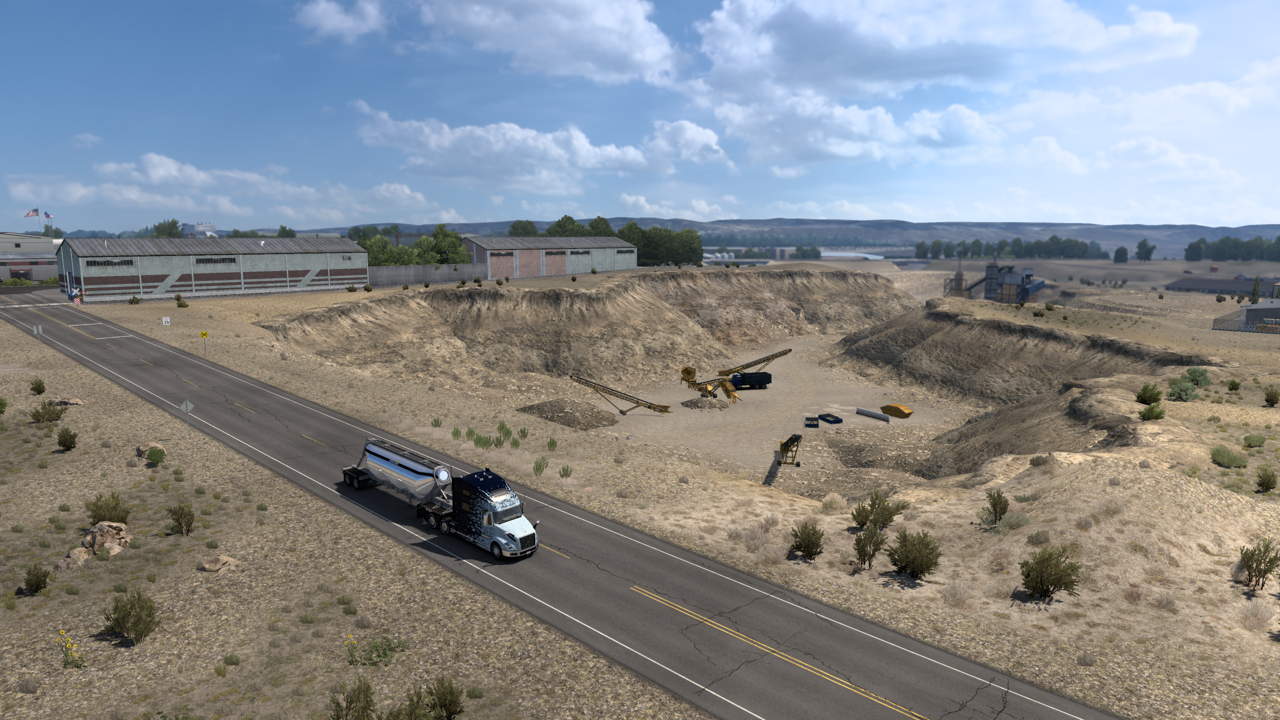 >>50095029 Покатушки по Айове в рамках ивента закончились. Как и планировал, стяжал в инвентарь плюшевого порося на сиденье. Вот только в питбуля его пока не положить, придётся ждать, пока автор добавит прописку для него. В целом штат довольно приятный, много красивых мест и достопримечательностей, в частности, самый большой тракстоп Iowa-80 и самые большие (не знаю, правда, в сравнении с чем) бункеры-зернохранилища.