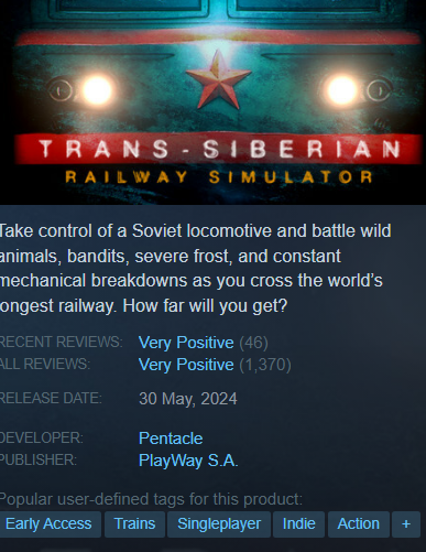 >>50114732 Симулятор поездов унылое говно, там душная немецкая электричка с остановками у каждого столба. Про поезда норм Derail Valley и SimRail. Есть еще Railroader про паровозы, но там больше симулятор рабочего на жд.