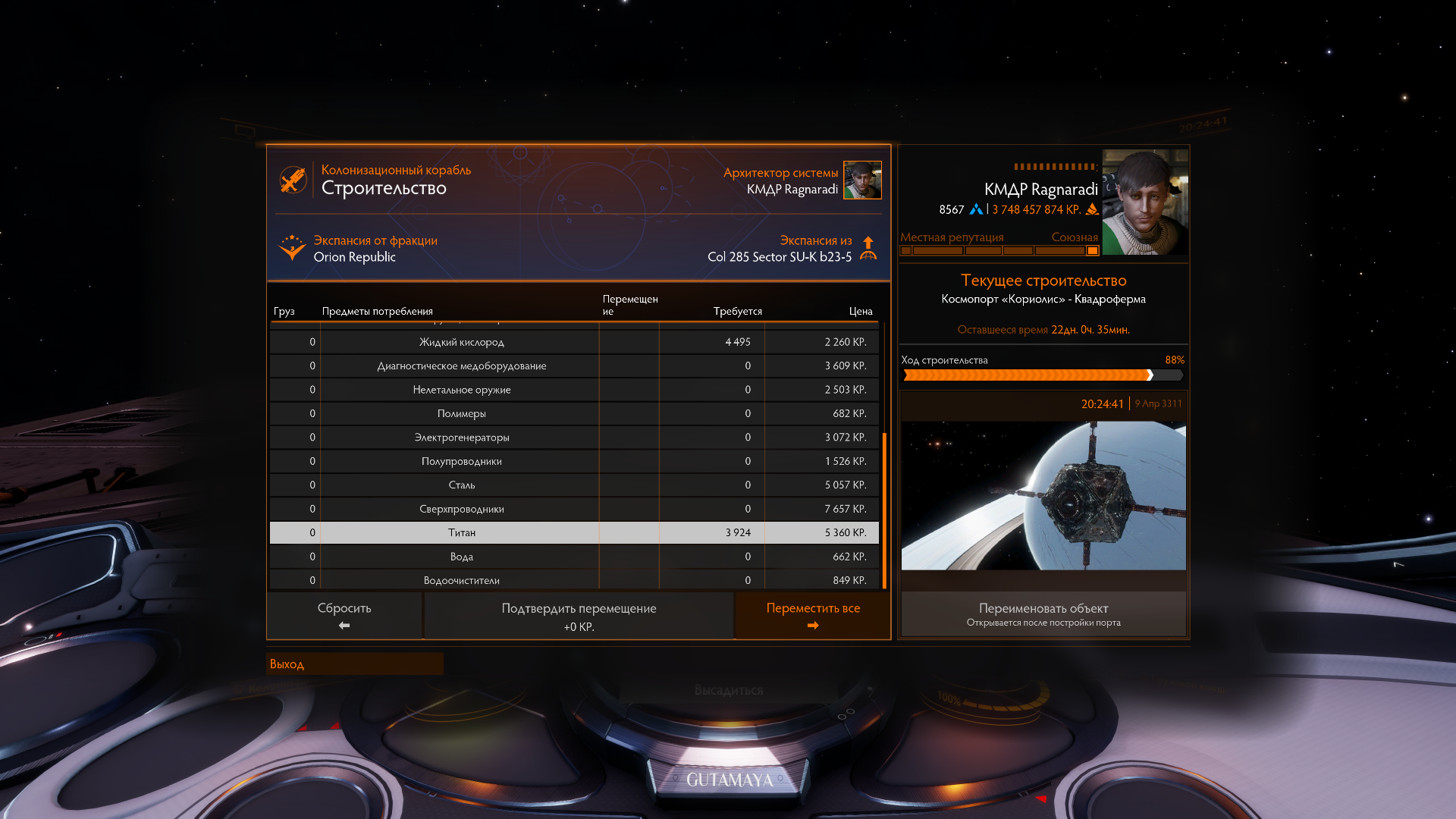 Ну шо, писюны... Походу для производства стали и люминия придётся строить ещё один хуй, уже у другой планеты. 5к арксов на ренейм накопятся через пару недель, так что пора придумывать хую красивое имя. Думайте. а я пошёл говновозить, пиздос