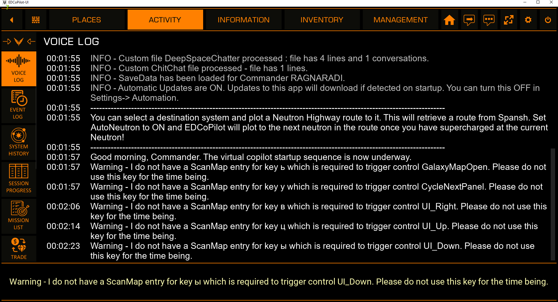 >>50083076 > EDCoPlilot Я на него забил хуй ещё на этапе настройки ибо в рот ебал переназначать всю раскладку. Да и профитов особых чёт не нашёл. Ну типа да, он умеет строить трейд залупы - но зачем? Максимально унылое времяпрепровождение даже по меркам илитки. Может найти ближайших негров - но они и так все у меня в закладках. Может найти ближайших торговцев материалами - но ближайшие к шинке опять же у меня в закладках есть. Может подсказать, где и что надо майнить - но я и так знаю, что майнить надо сталь с титаном и возить на ХУЙ!