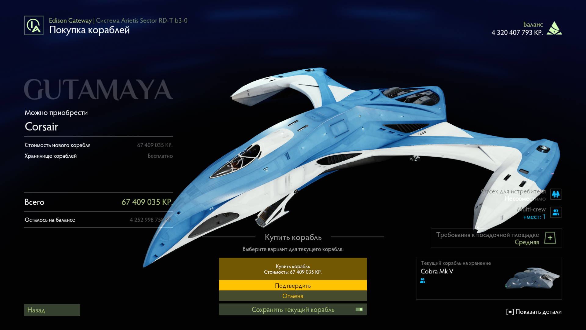 Купил-таки пятую кобру. Пиздец БАЛАНС. Я принципиально не хочу на этом летать и принципиально не куплю клиппер за арксы, а ведь хотел брарба порадовать копейкой. Новый корабли ломают игру, я заявляю об этом твердо и четко.