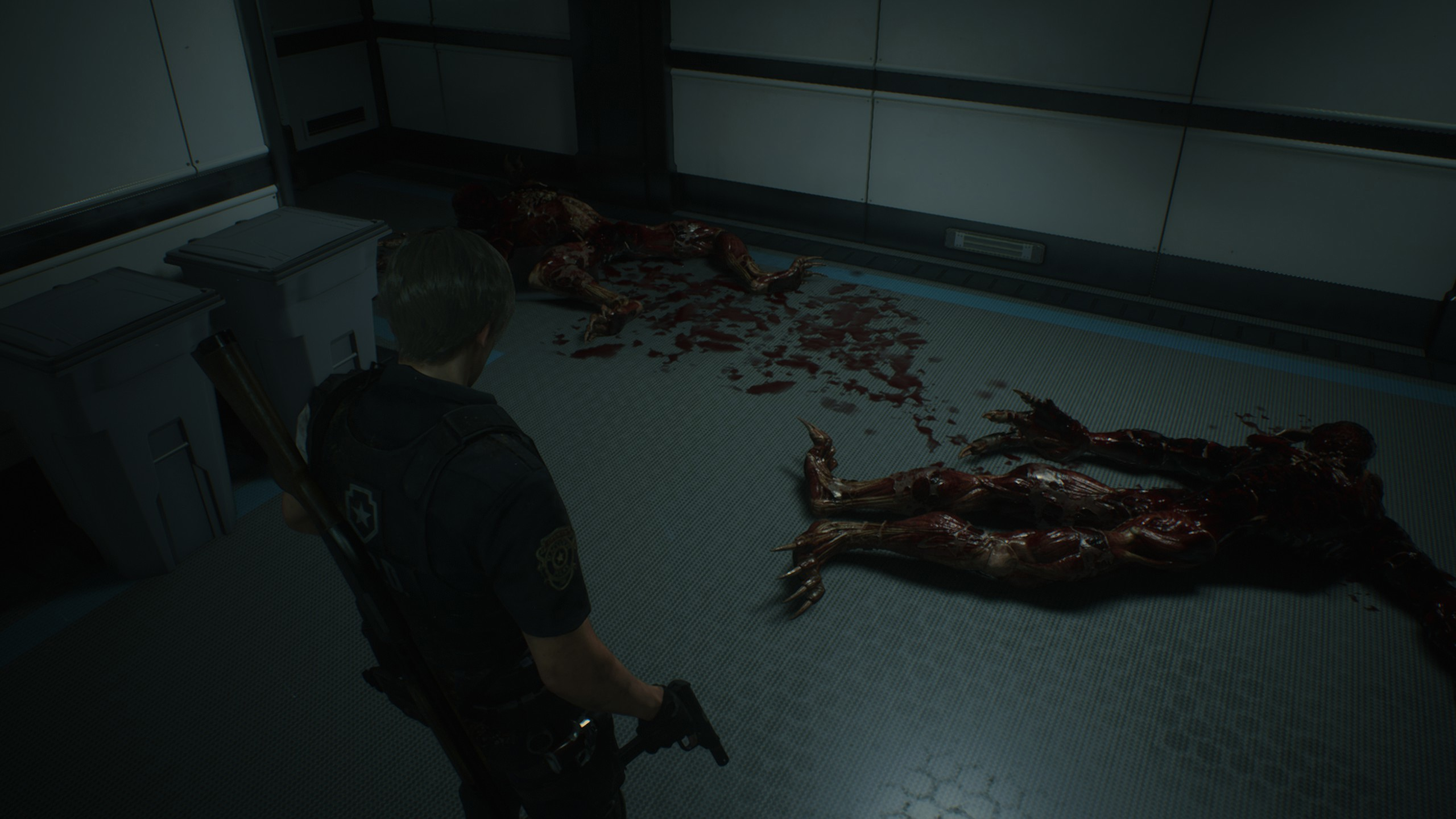Игра перестаёт пугать, как только ты понимаешь основные механики: враги бьют один раз, а потом дают уйти и.т.п. Полицейский участок сделан хорошо, но потом идёт абсолютно ублюдочная, тягомотная канализация — не страшная, не сложная, но душная за счёт левел- и арт-дизайна. Отдельным пунктом отмечу кривущий бой с Биркиным, где нужно станить его на траектории летящего контейнера, ой бля... В этот момент оценка снизилась до 1/10. Вот лаборатория сделана неплохо, вполне на уровне начала игры, но ходьба по коллектору сильно смазывает общее впечатление.