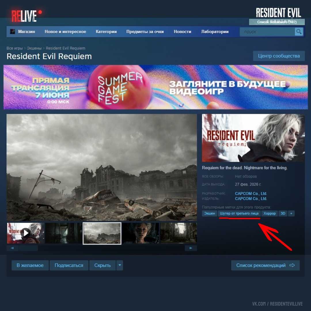 Релиз Resident Evil Requiem ожидается 27 февраля 2026 года на PC (Steam), PS5, Xbox Series X и S. Обещают «начало новой эры хорроров на выживание», историю с яркими персонажами, страшно интересный геймплей и полный перевод на русский.