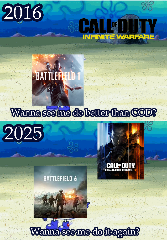 Вывод - комьюнити батлы просто нужен повод ПОНЫТЬ. Повторюсь: ЛЮБАЯ батла новая для этого гнойного комьюнити - говно ровно до тех пор, пока не выйдет следующая. На релизе следующей части предыдущая, видимо настоявшись, внезапно становится Вином тысячелетия, а статус говна переходит к новой части. Так было с 1, 5 и даже 2042.