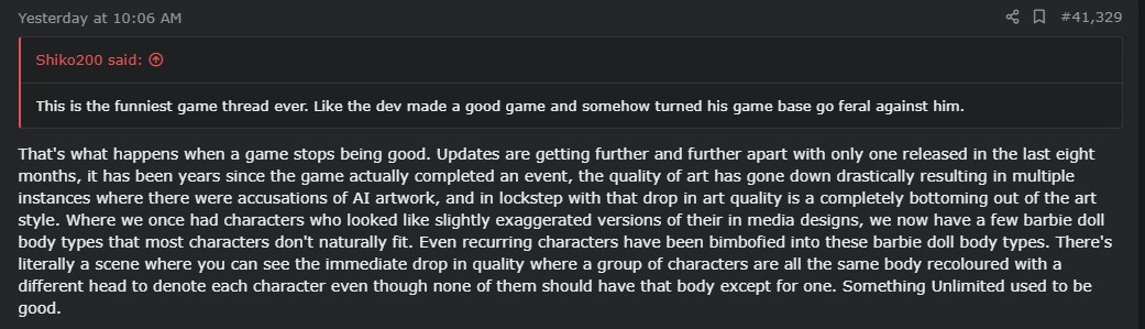 Кукичи уже заебали срать на фке своим куколдским нейрослопом. Уже штук 5 видел, когда ласт апдейты листал. Воистину поедатели говна.