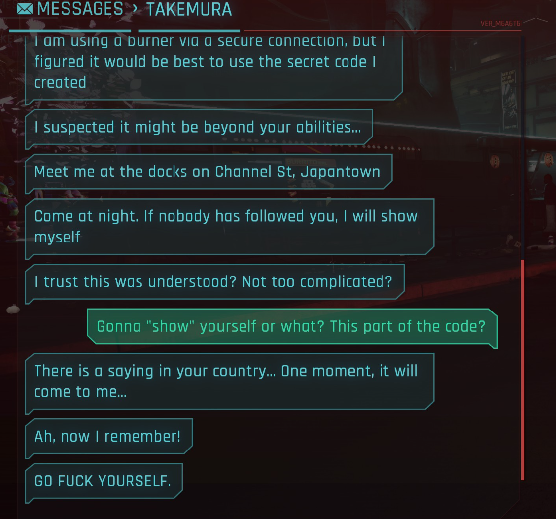 А что - серьезно существует локализация диалогов в КП? И ещё более серьезно - кто-то неиронично с ней играет? Ебать подгоните мне образец на пару минут, давно не смеялся.