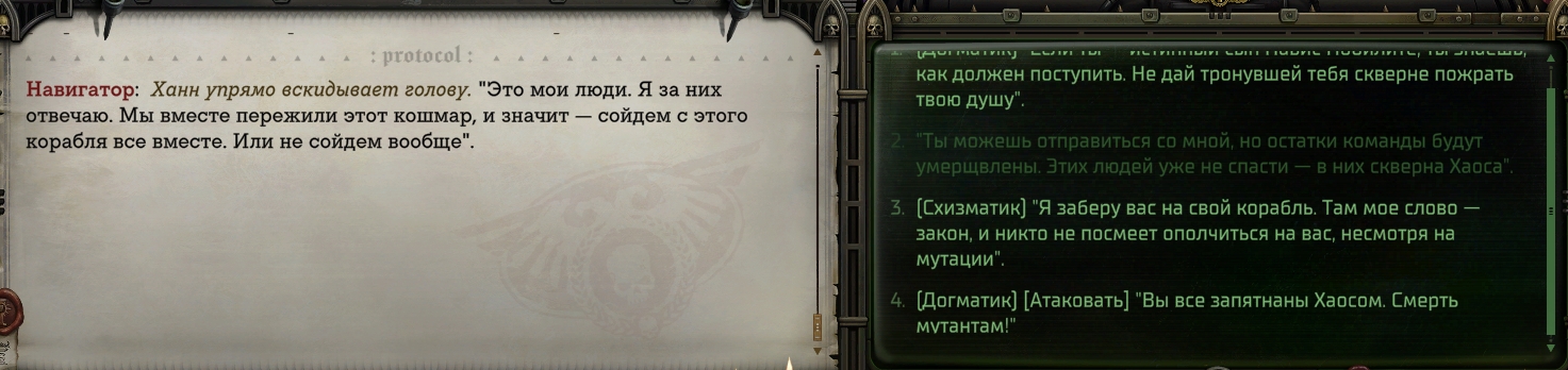 >>50174010 Мне, как дознавателю и арбитру, было достаточно того, что мы увидели на планете. По такой логике Эйзенхорну Некротек надо было тоже у себя оставить?( И дознаватель, и арбитр - должностные лица - сказали, что нужен экстерминатус. Я в своем прохождении не провел его прямо сейчас, а оставил на попечение Министорума этот вопрос. Анон выше решил выжечь сразу всю заразу - и как и в случае с убийством Карыча на месте это оправданные действия во имя бОльшего блага.