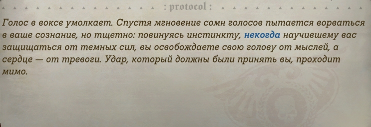 >>50173900 >Ты кто такой Вольный Торговец на службе Империума, догматик. Спас Райкад от демонического вторжения, открыл в Комморре варп-дырку, привел свой протекторат к процветанию, уничтожаю еретиков. А ты кто такой? >Она тебя 10 минут назад спасла К сожалению, она осквернена варпом, бомба замедленного действия. Было принято тяжелое решение пустить ей пулю в голову. От твоих слов пахнет еретиком и\или префектом Инкрибией с ее бюрократией.