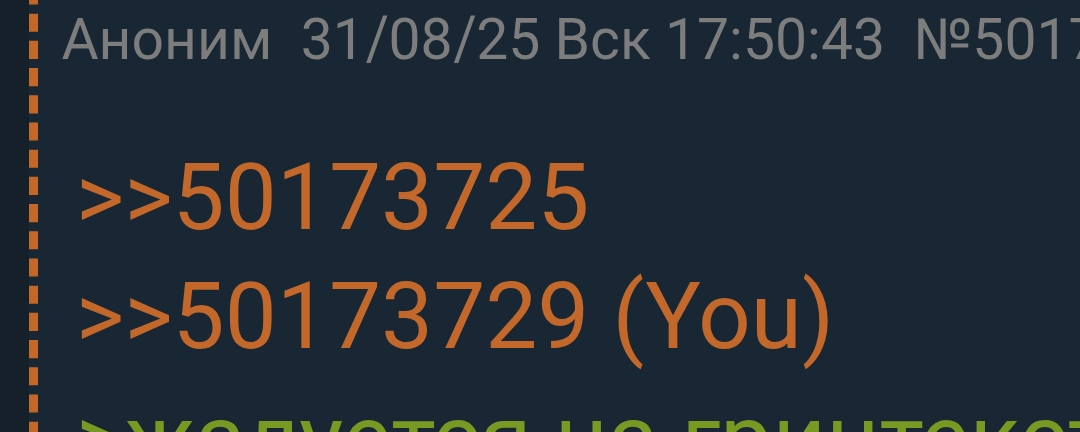 >>50173529 >напиши ещё какой-нибудь хуйни в таком духе, плес Что такое, рт-братик? Уже привык к унижениям под моим влиянием? Нравится, когда тебя бичуют пфг-братья - настоящие хозяева треда? Небось уже руки в трусы засунул, м?