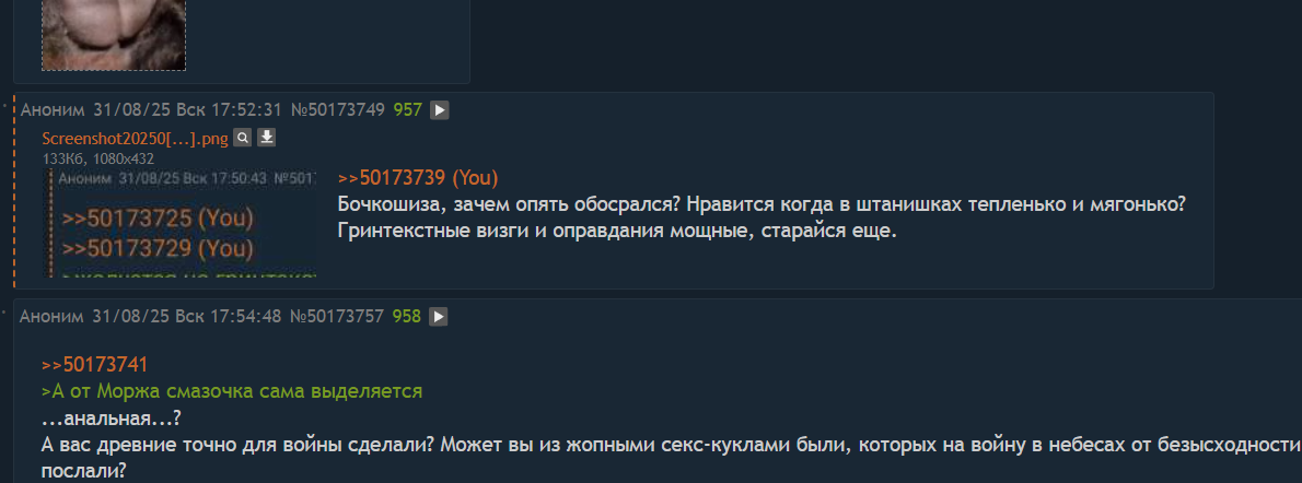 >>50160303 >это не я, это не я не я это ты ты >а вот в прошлый раз меня картинкой с макэвоем проткнули! >ой то есть не меня, я же изображаю что я это не я... Лол блядь, так и не научился семенить, хуета бочкошизная
