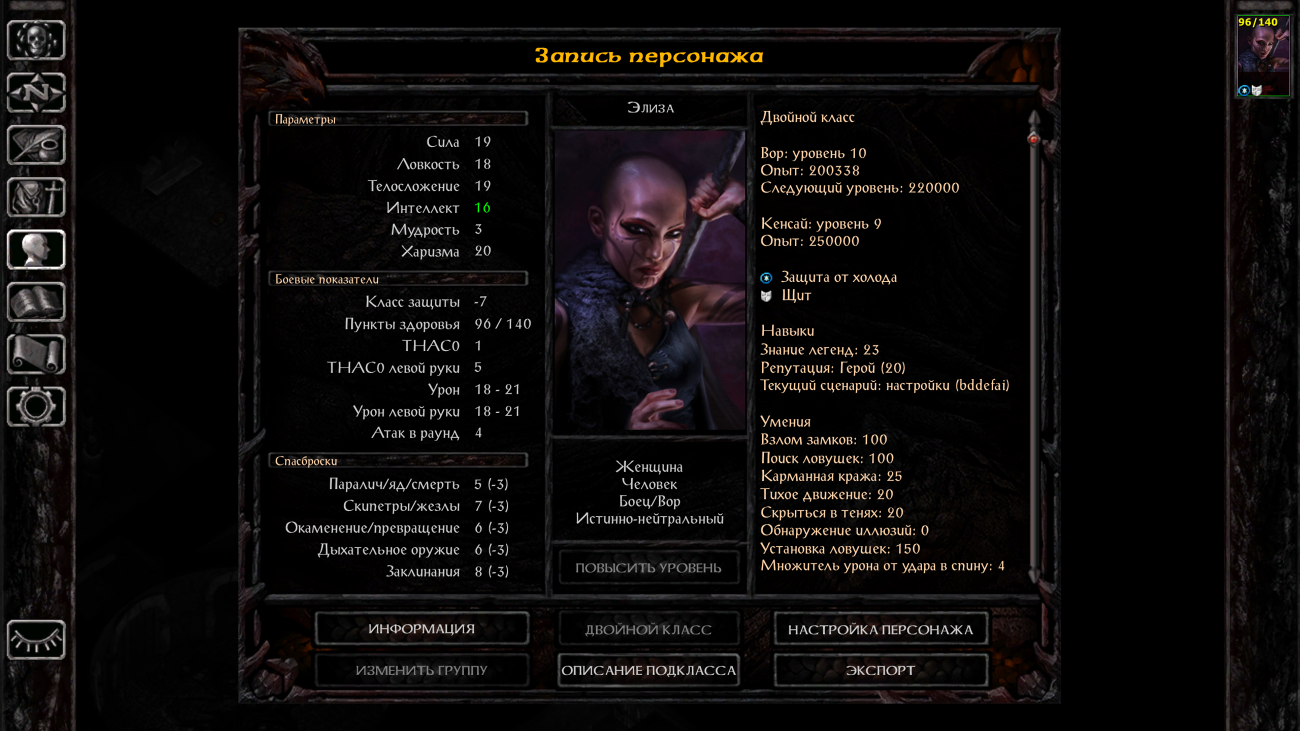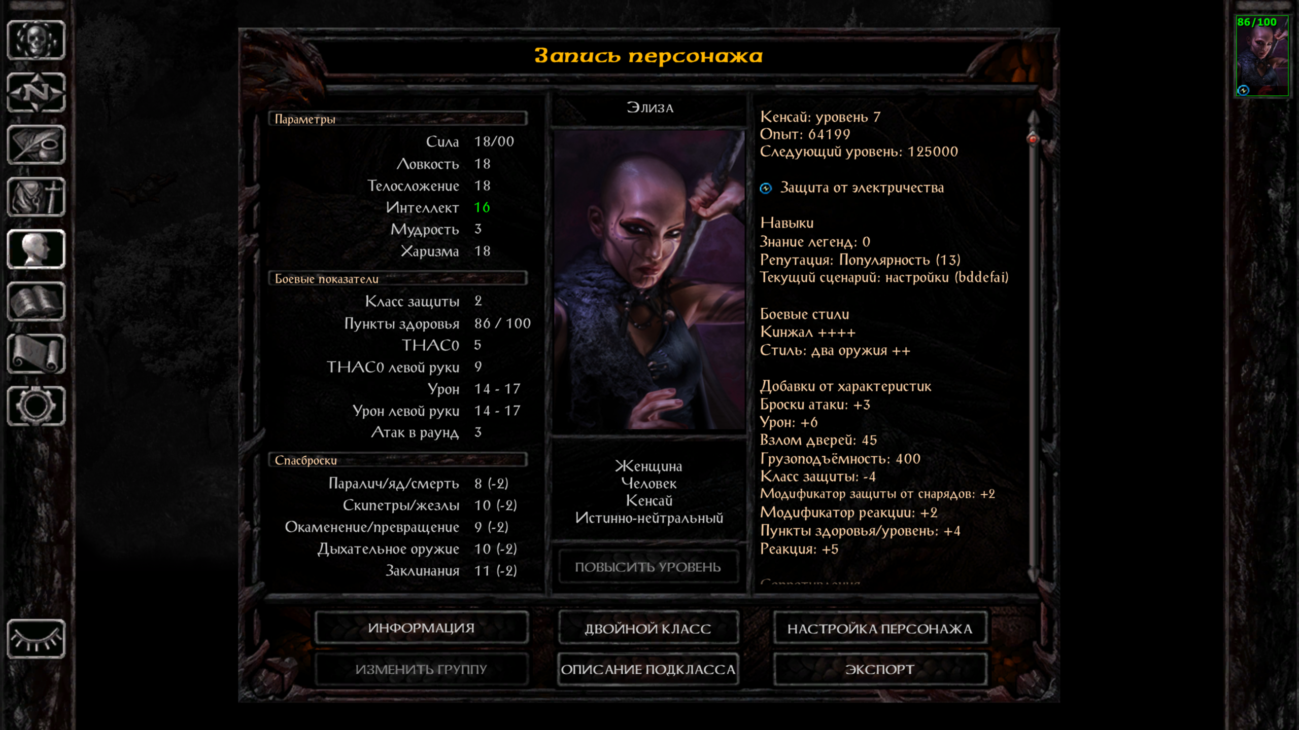 Взял 7 уровень. Чёт чувствую, что брать нужный 9 уровень в соло будет огромной проблемой. Чистить метательными кинжалами всю карту ради 200к опыта, а потом ещё столько же на воре... Думаю махнуть рукой и задуалиться на 7 уровне, но пока ещё не решил. Подумаю какое-то время.