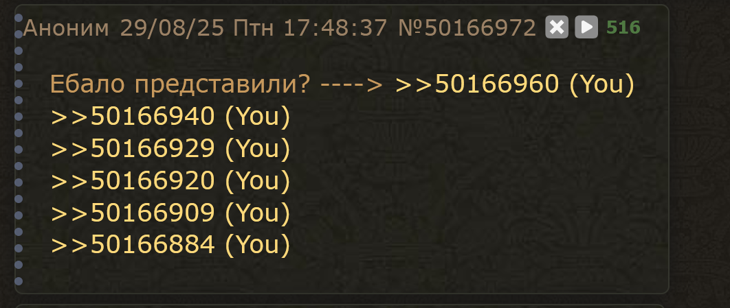 >>50154469 Модер, кстати, оценил базу и проигнорировал чушка-стукача.