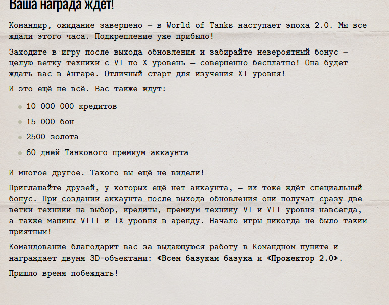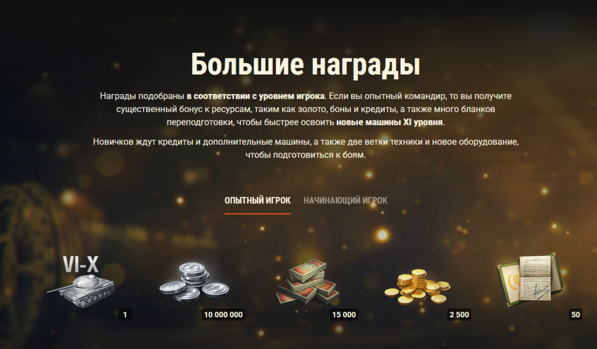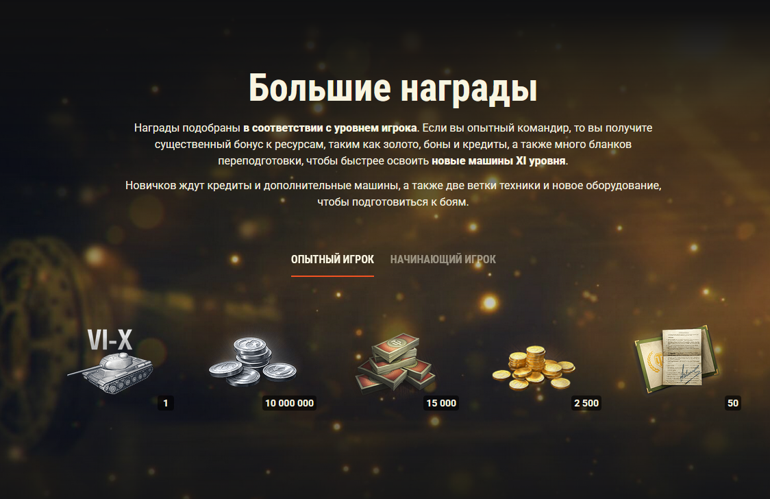 Боны для опытного игрока. Подозреваю, что зарегать нулевый аккаунт до 3 сентября не прокатит, наверняка там нужно 100 боев или типа того, хотя можно попробовать.