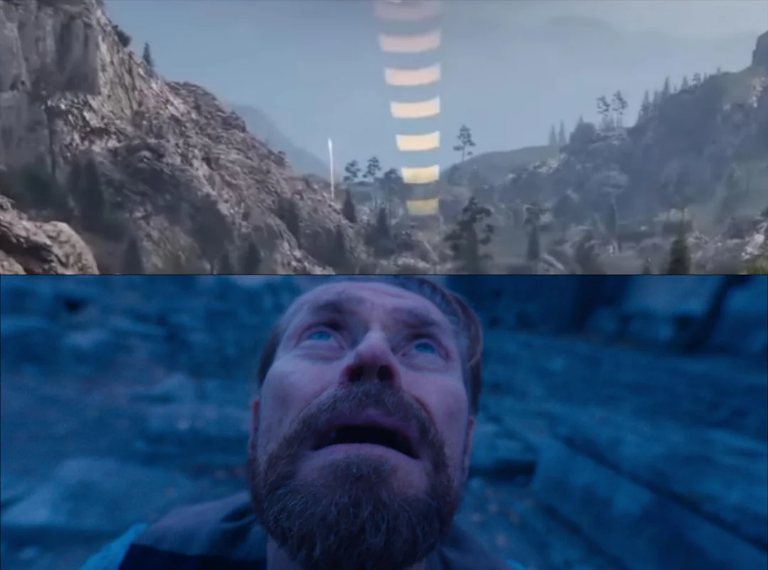 Поехал на верном Бурасе чекнуть горочку на "Границе империи". Только заехал не сверху, как обычно, а снизу - там, где открывается проход наверх Вступил в бой с вражеским разъездом... и тут на меня сверху (!) из-за горы, из этого самого прохода, вываливается НЕЧТО!
