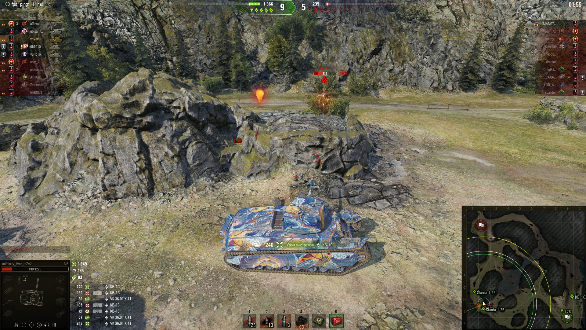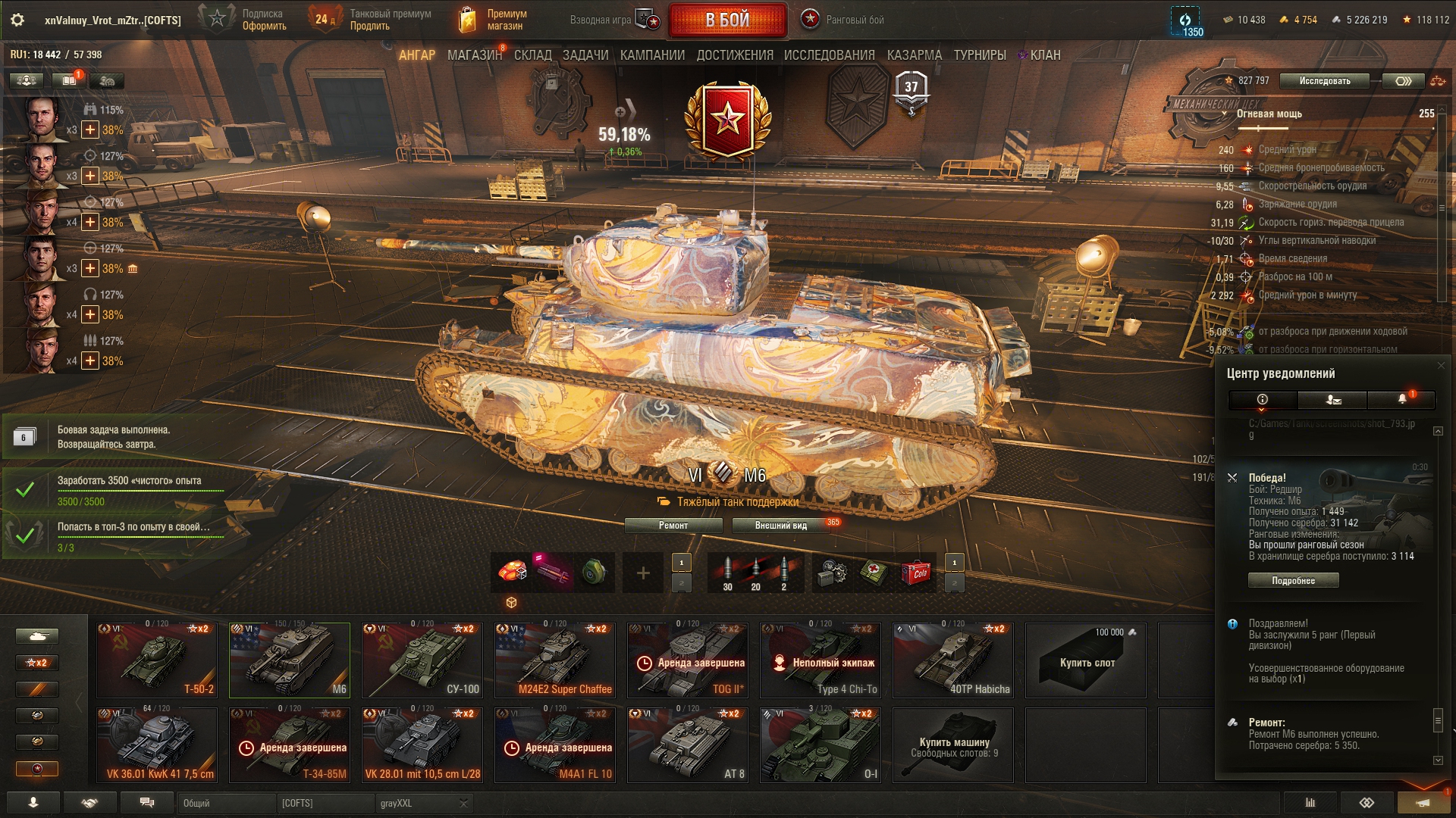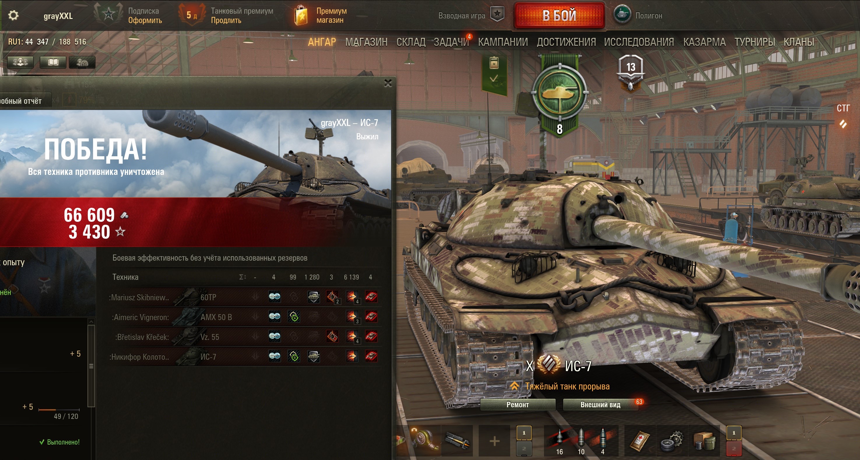 Проходил на ВЗ44, Т34-85м, М6, Павлак танк, тайп 58. В основном, дожидался пока шкала очков боевого пропуска заполнится и пересаживался на следующую машину.