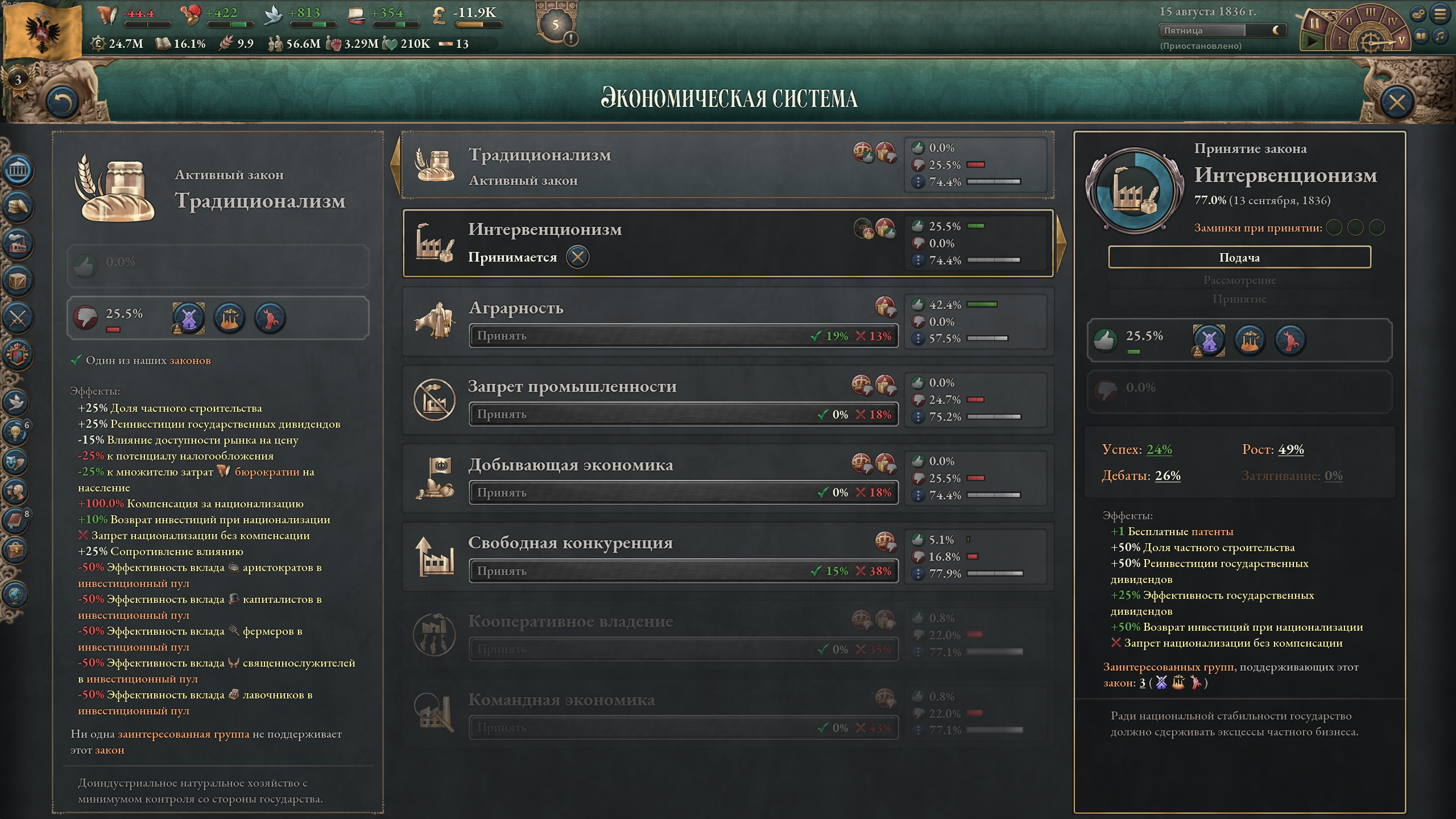 >>50169894 И нихрена не началось. Еще и с агитаторами не повезло. Один мужик, сделал его генералом и прокачал, остальные женщины. Право голоса для женщин тоже никто не хочет а еще тут походу баг, зашел в чит режиме и принял право голоса для женщин, появилась кнопка сделать женщину генералом, жму ее, а она не становится генералом. Пришлось принять частные школы, бонус влияния вывел интеллигентов из отчуждения. Буду сто лет принимать культурное отчуждение.